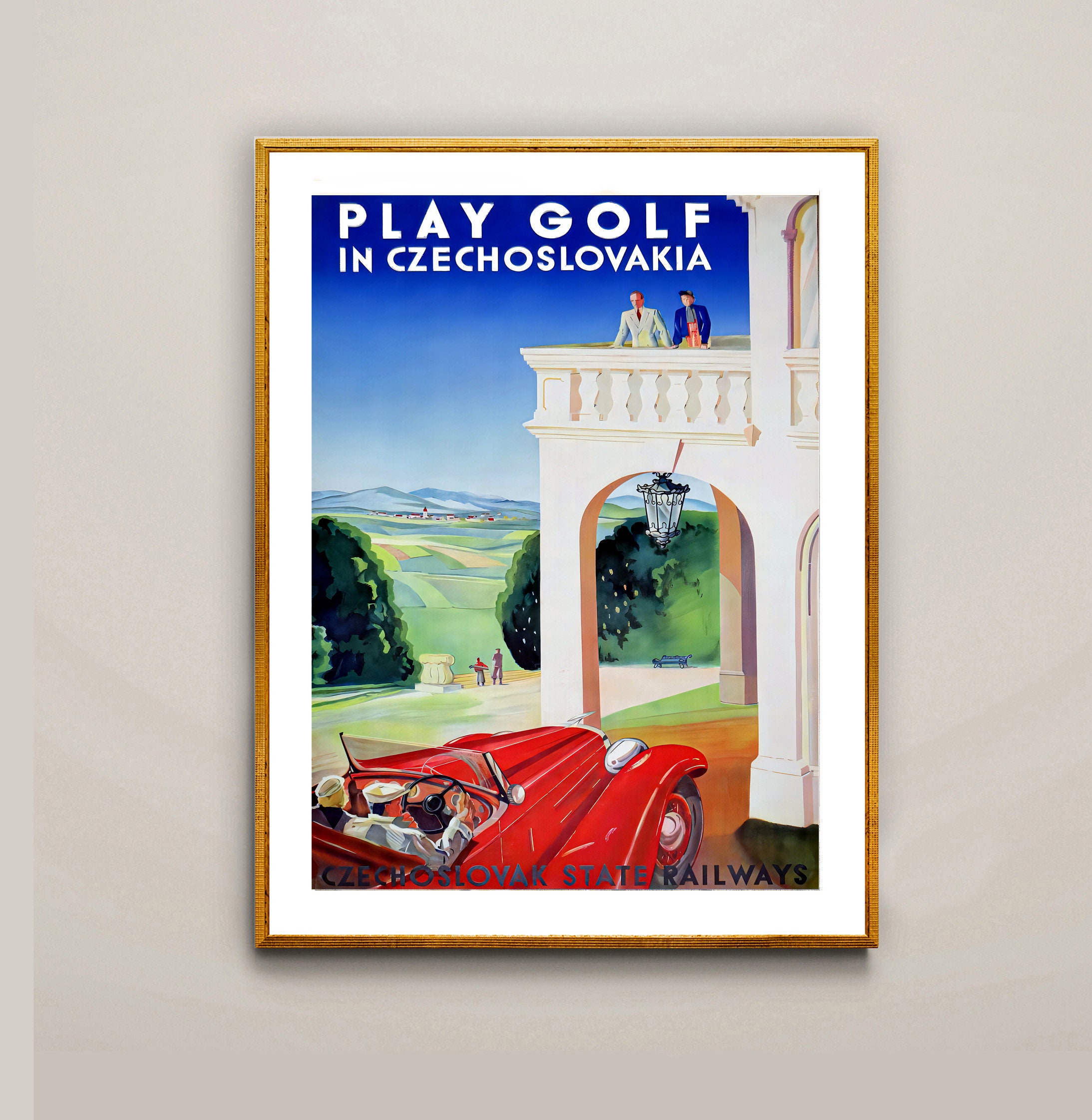 Play Golf in Czechoslovakia, Czechoslovak State Railways Vintage Travel Poster - Poster Print or Canvas Print / Gift Idea / Wall Decor