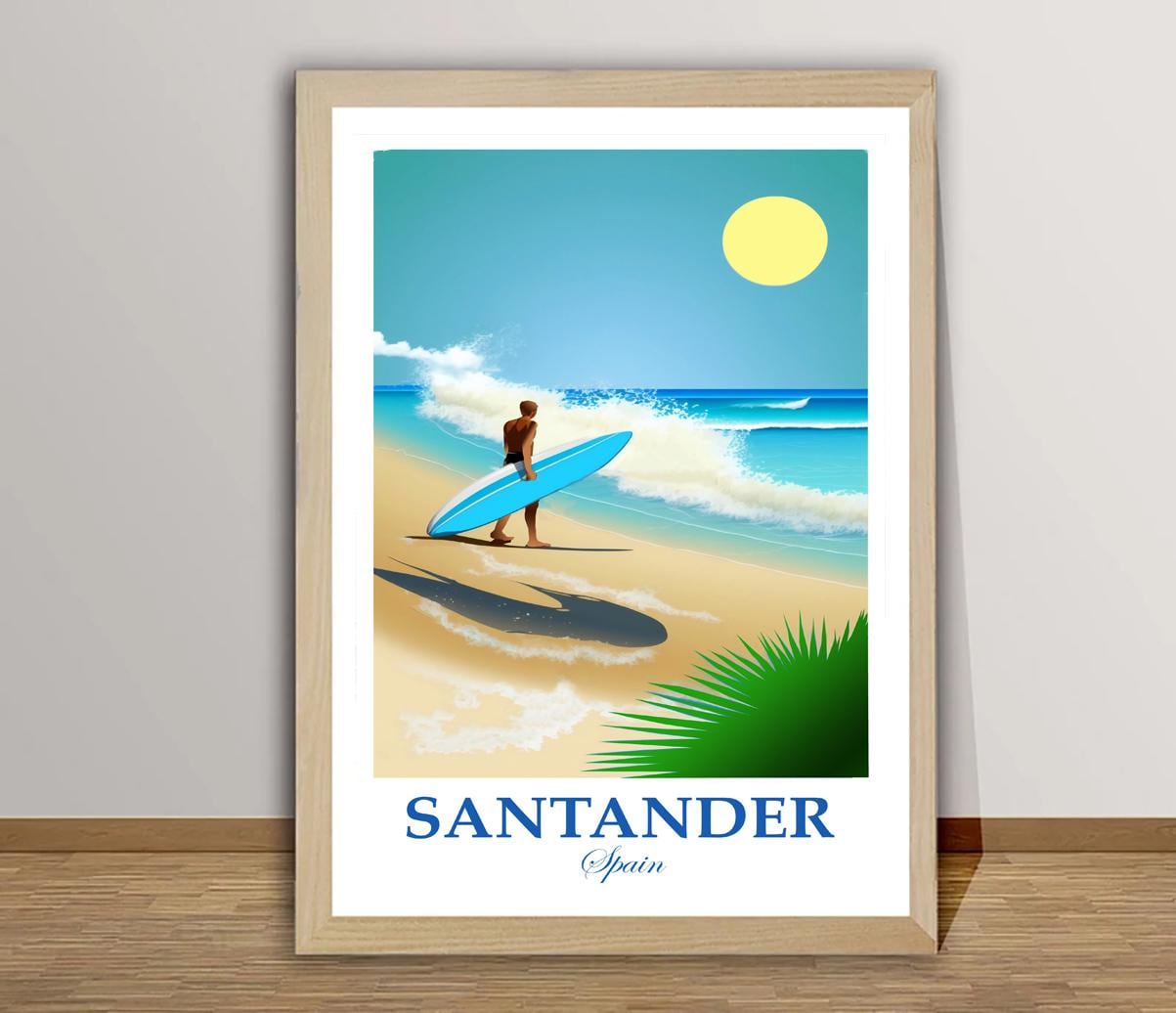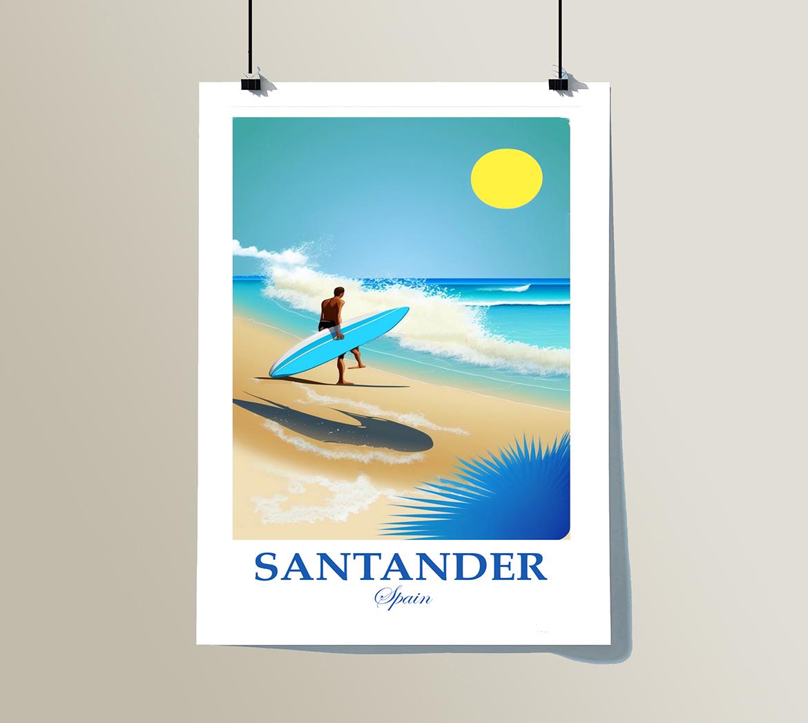 Santander, Spain Travel Poster by Wed - Poster Paper, Canvas Giclee Print / Gift Idea