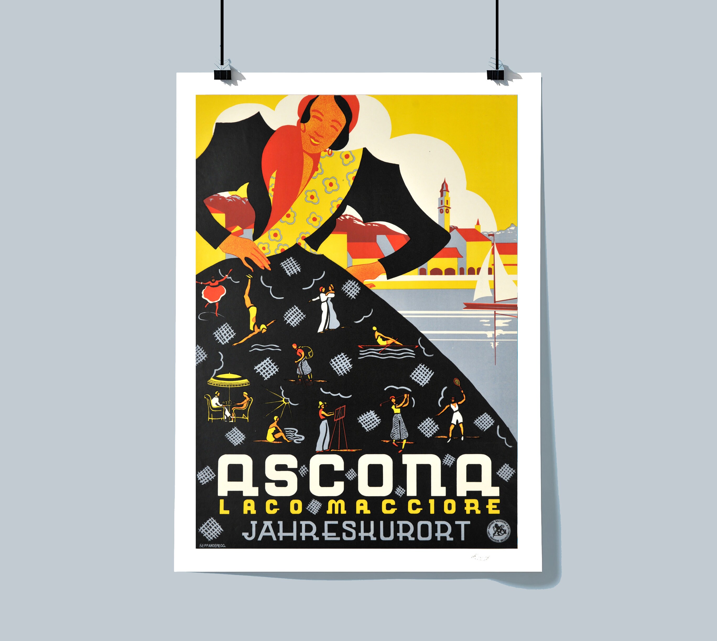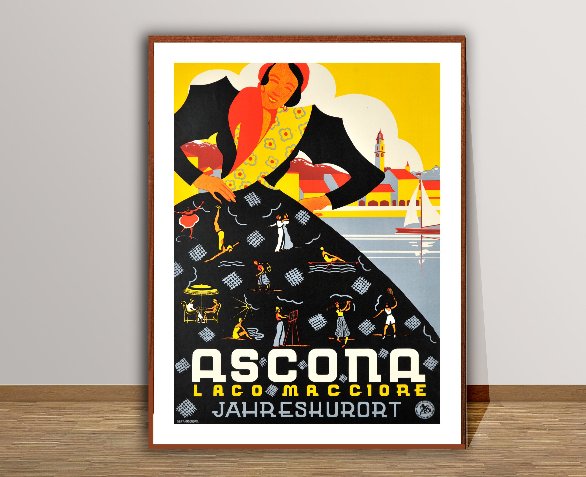 Ascona Lago Maggiore, Jahreskurort, Suisse Vintage Travel Poster - Poster Paper or Canvas Print / Gift Idea / Wall Decor