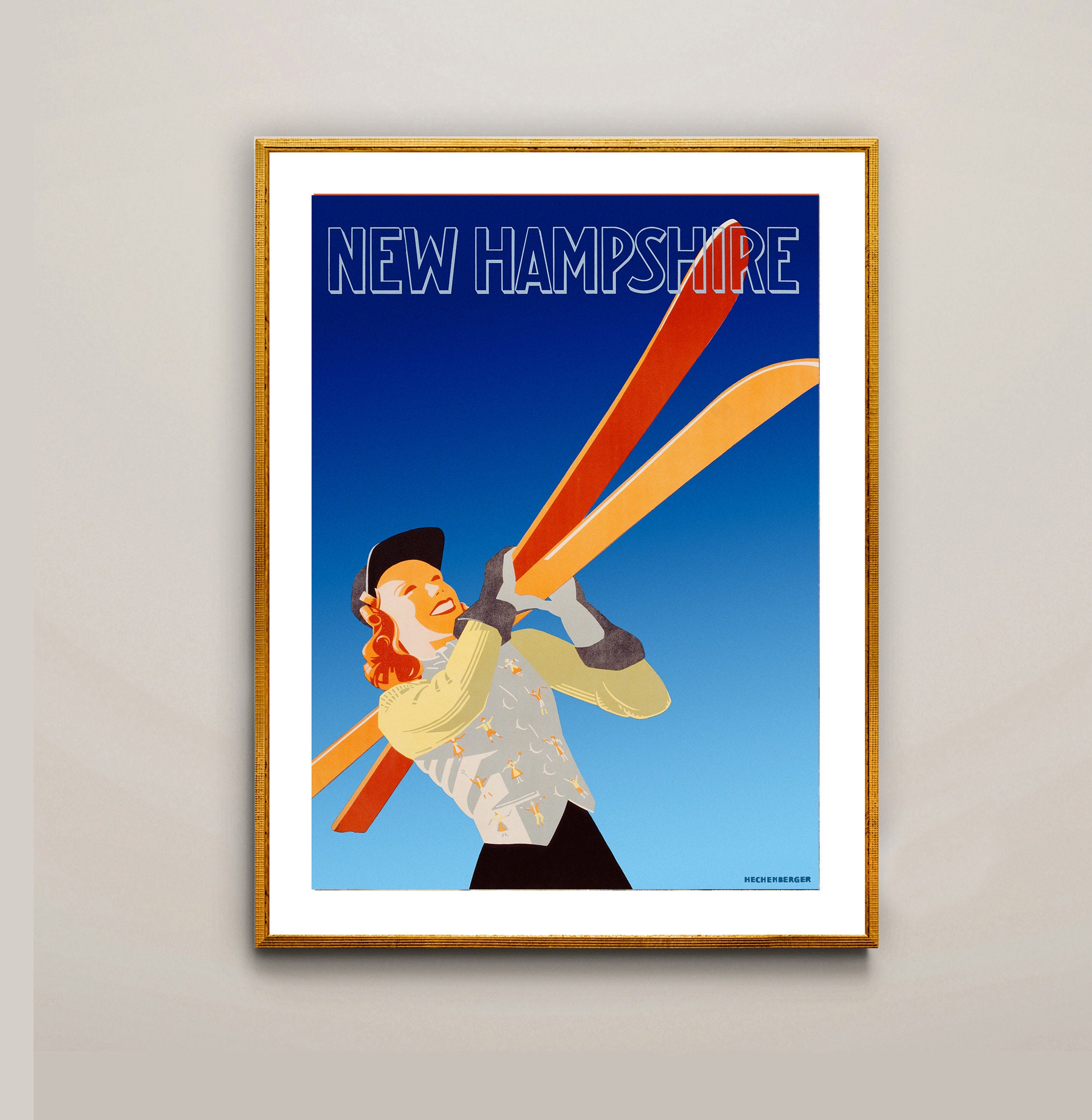 Vintage New Hampshire Ski Poster: Ski Sport Art Print