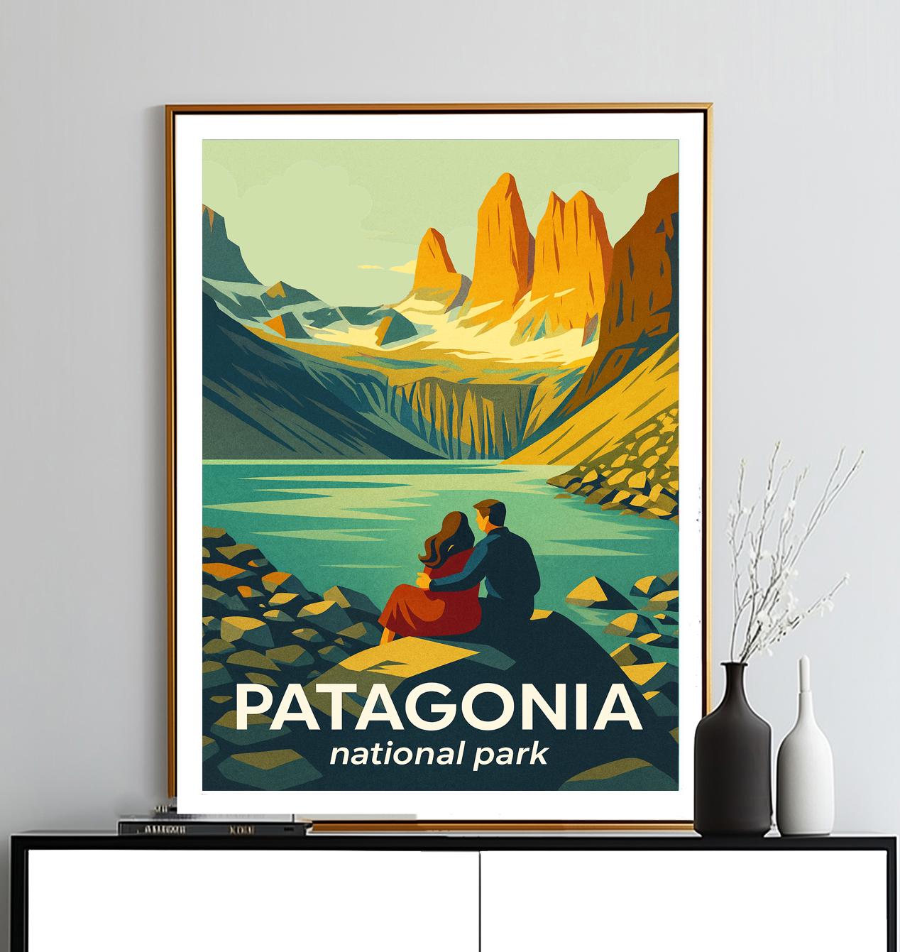 Patagonia National Park Travel Poster: Chile Landscape Art Print