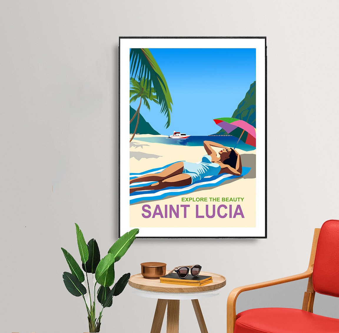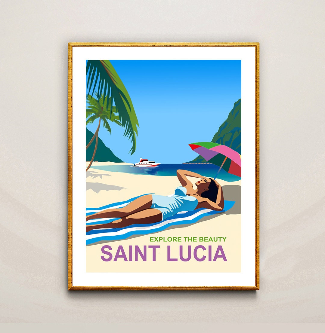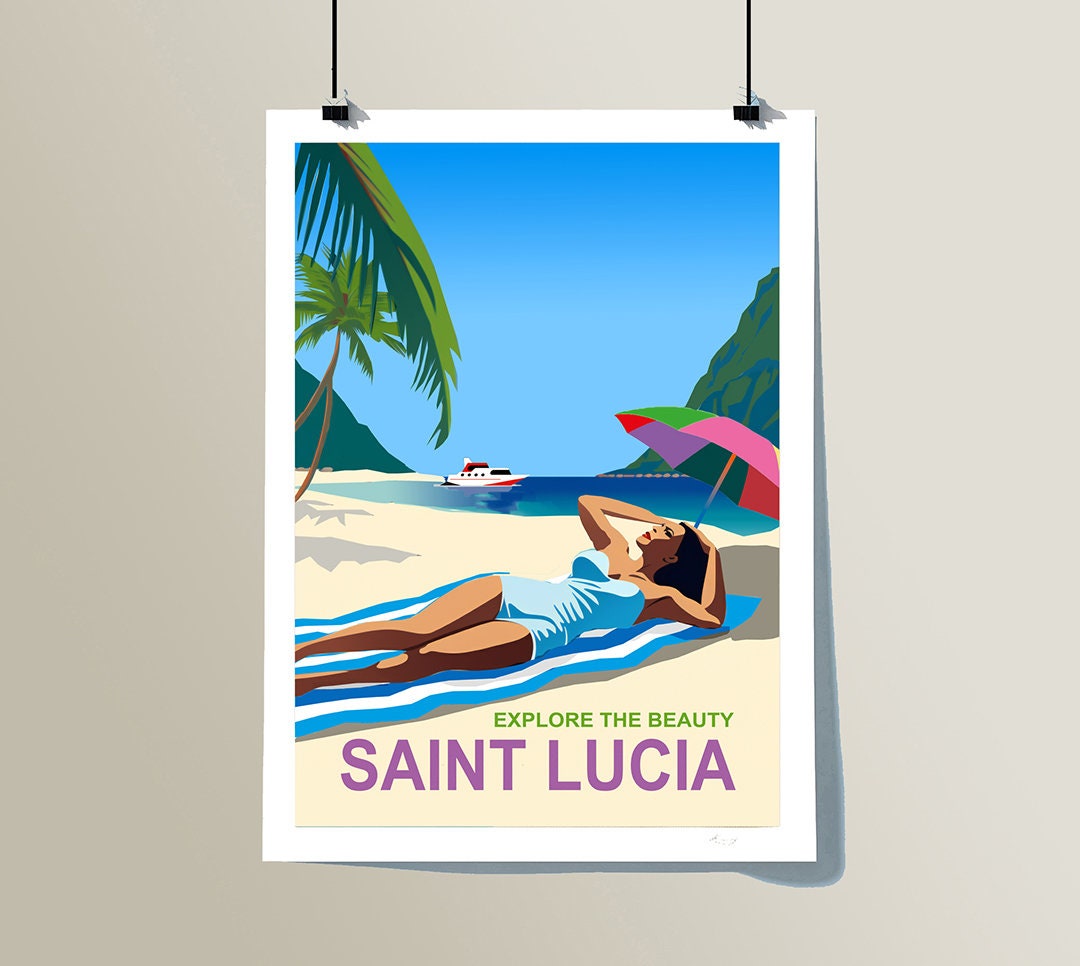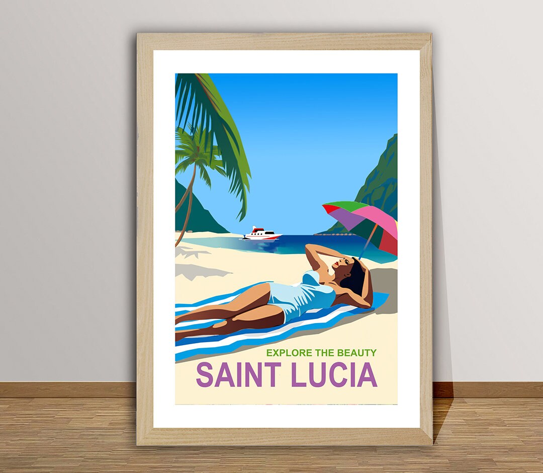 Saint Lucia Travel Poster: Caribbean Island Art Print