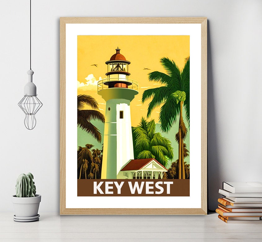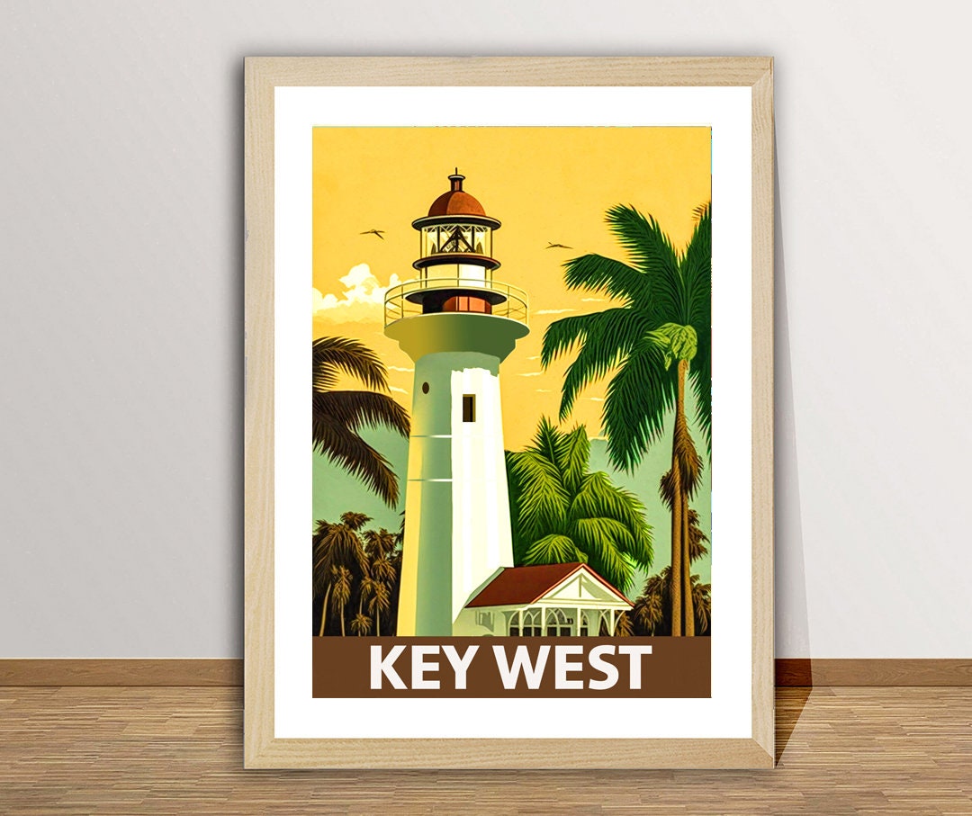 Key West Lighthouse Travel Poster: Vintage Style Print