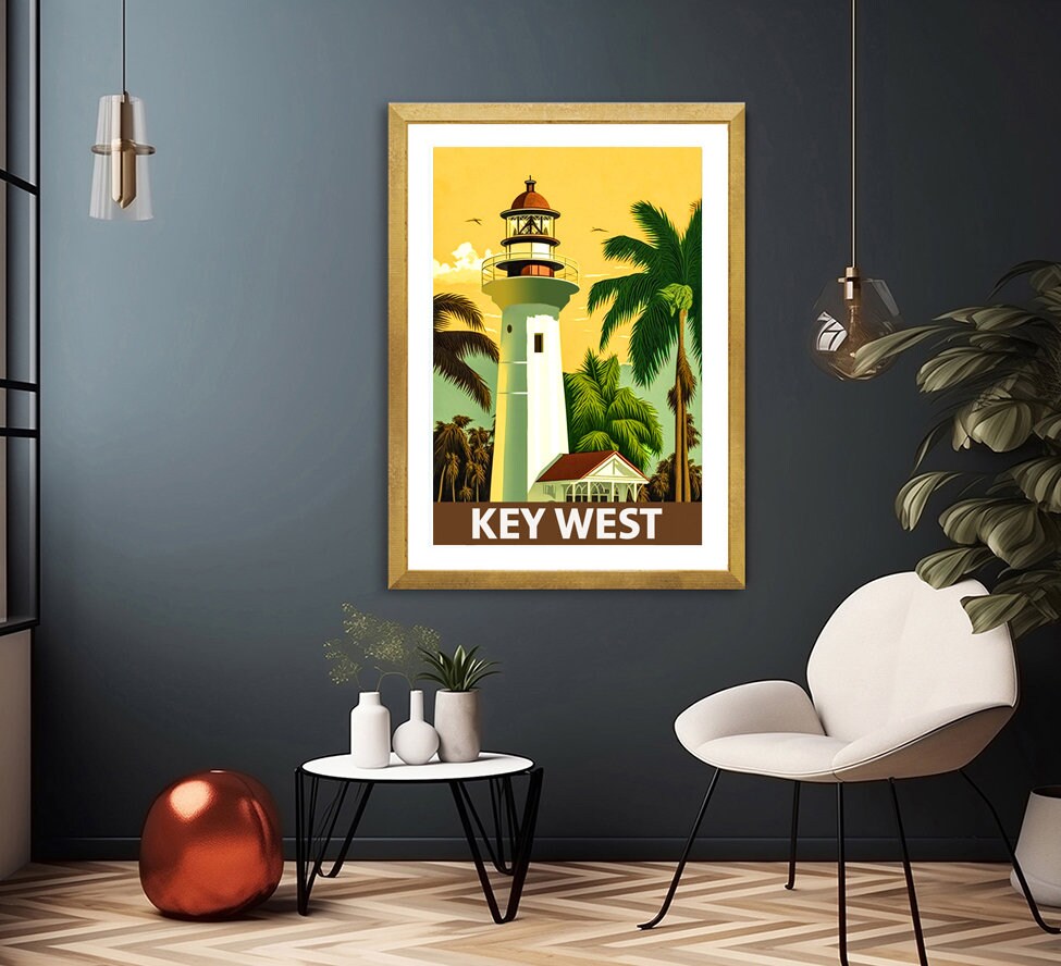 Designed by WallArty ai Generated. Key West, Miami, United States Modern Travel Poster by Wed - Poster Print or Canvas Print / Gift Idea / Wall Decor
