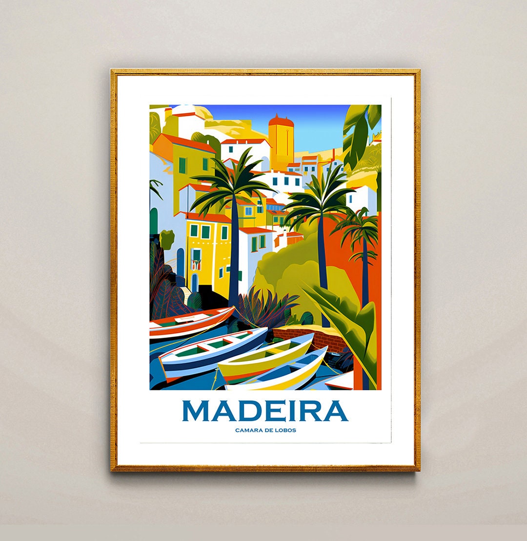 Designed by WallArty ai Generated. Visitez Madeira, Portuguese Travel Poster by Wall Arty Exclusive Design - Poster Paper or Canvas Print / Wall Decor / Gift Idea