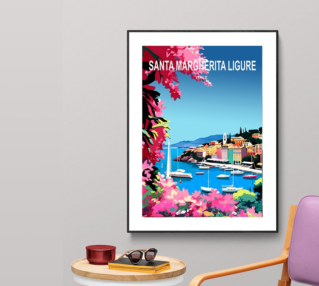 Designed by WallArty ai Generated. Santa Margherita Ligure, Italy Travel Poster - Poster Paper or Canvas Print / Gift Idea / Wall Decor