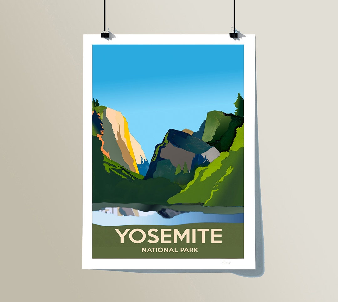 Yosemite National Park, United States Travel Poster by Wall Arty Exclusive Design - Poster Paper or Canvas Print / Gift Idea