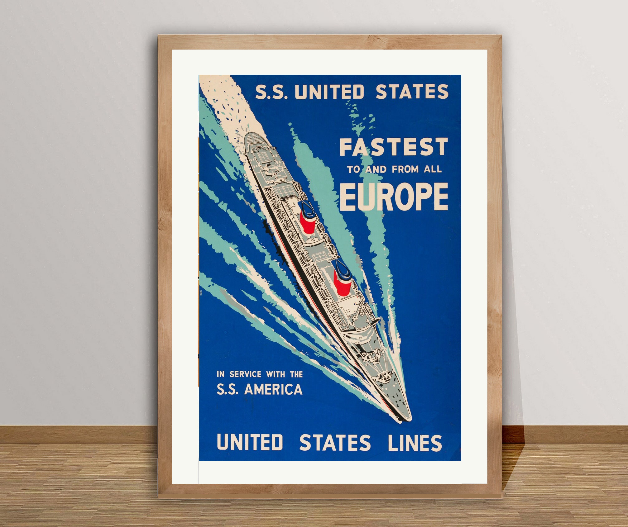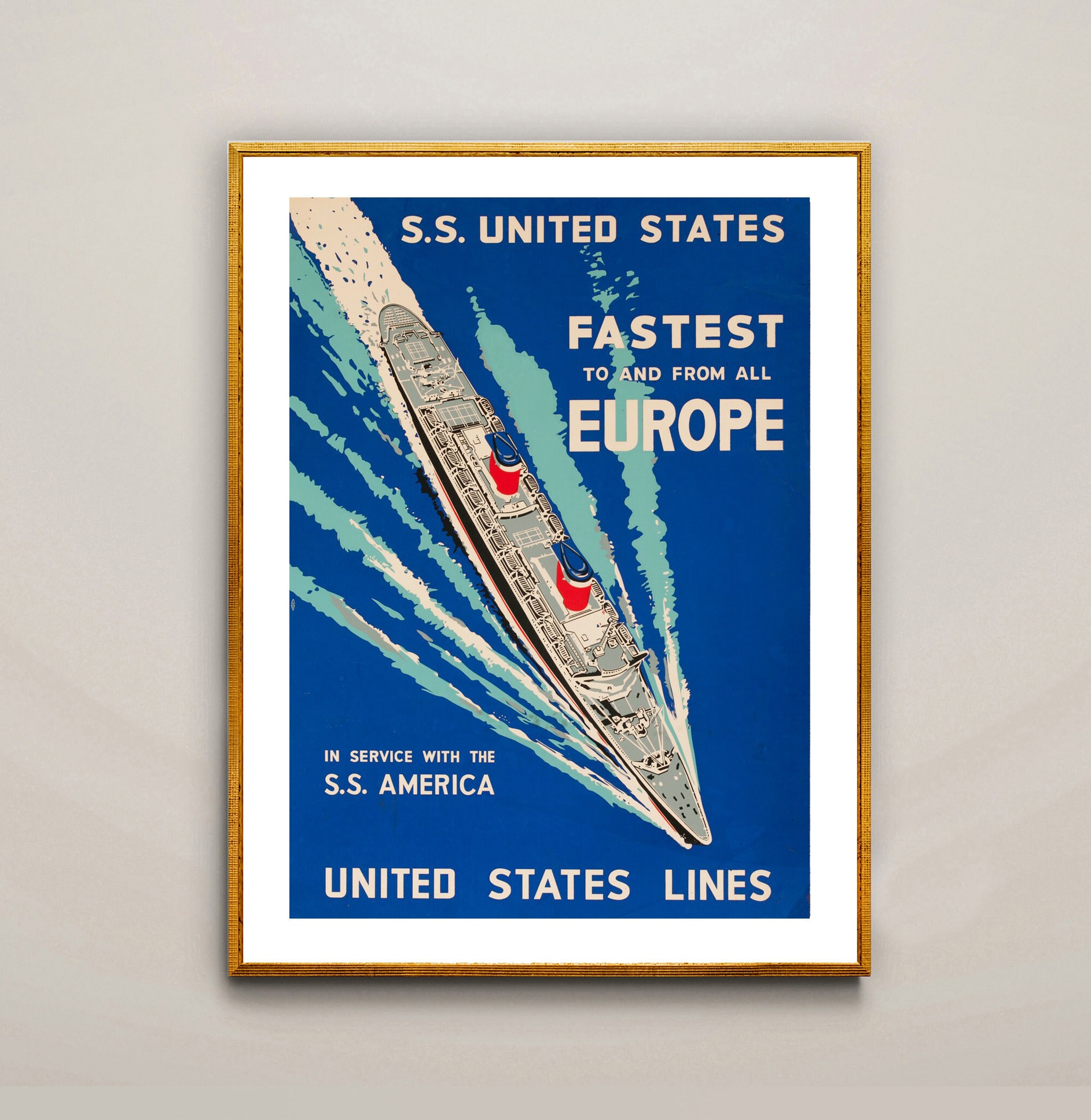 astest to and from all Europe United States Lines Vintage Transport Poster- Poster Paper or Canvas Print
