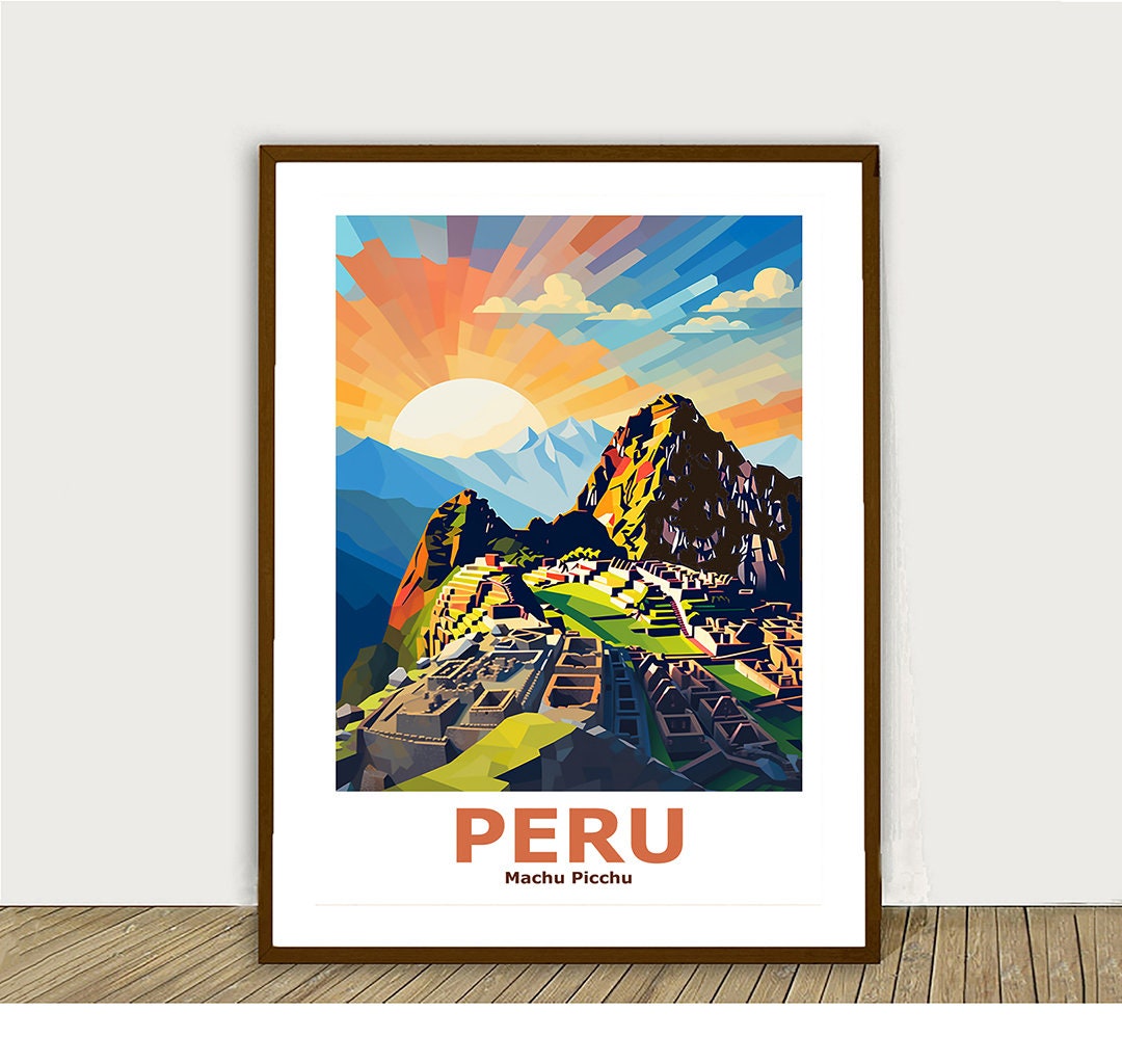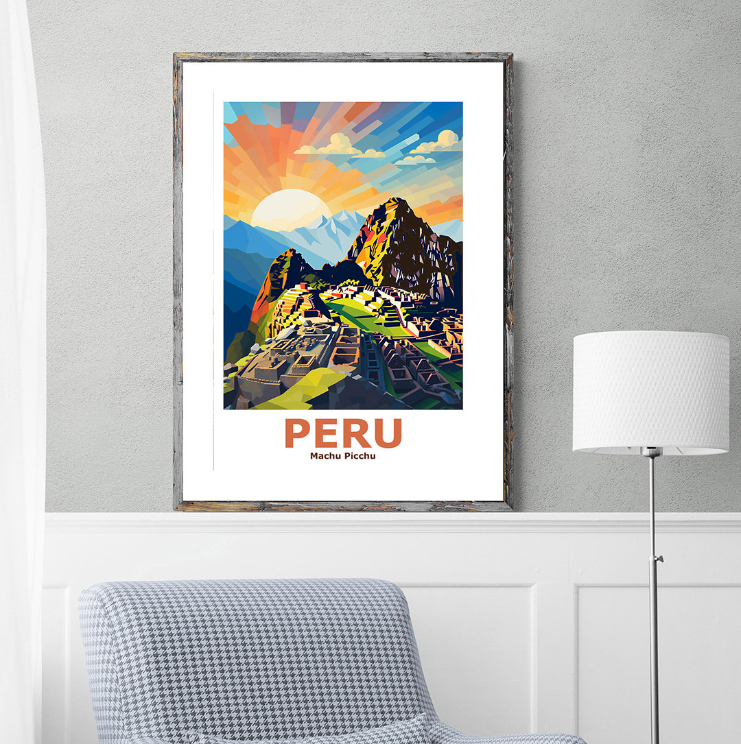 Designed by WallArty ai Generated. Peru, Machu Picchu Travel Poster by Wed - Poster Paper or Canvas Print / Gift Idea / Wall Decor