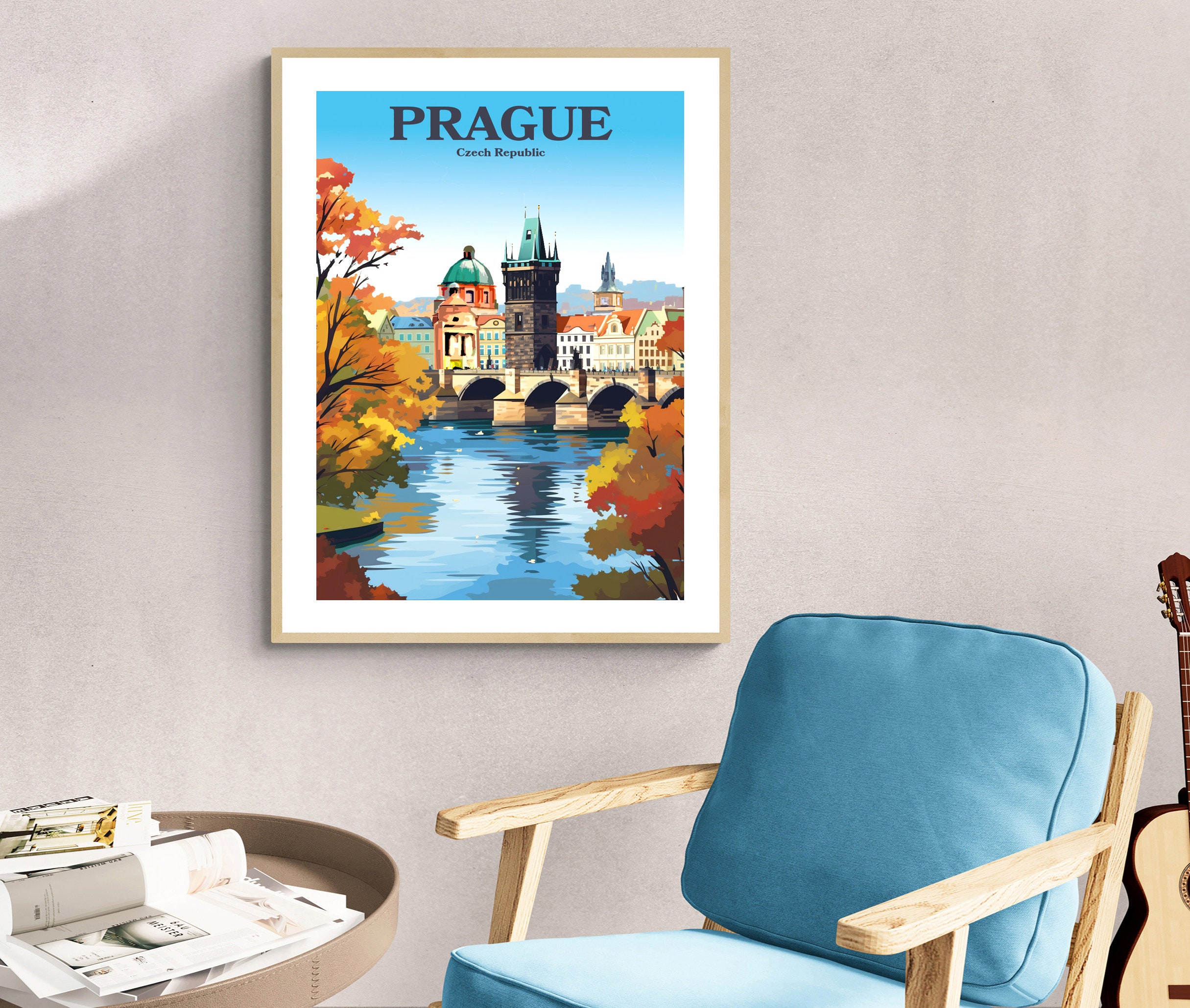Designed by WallArty ai Generated. Prague, Czech Republic Travel Poster - Poster Print or Canvas Print / Gift Idea / Wall Decor