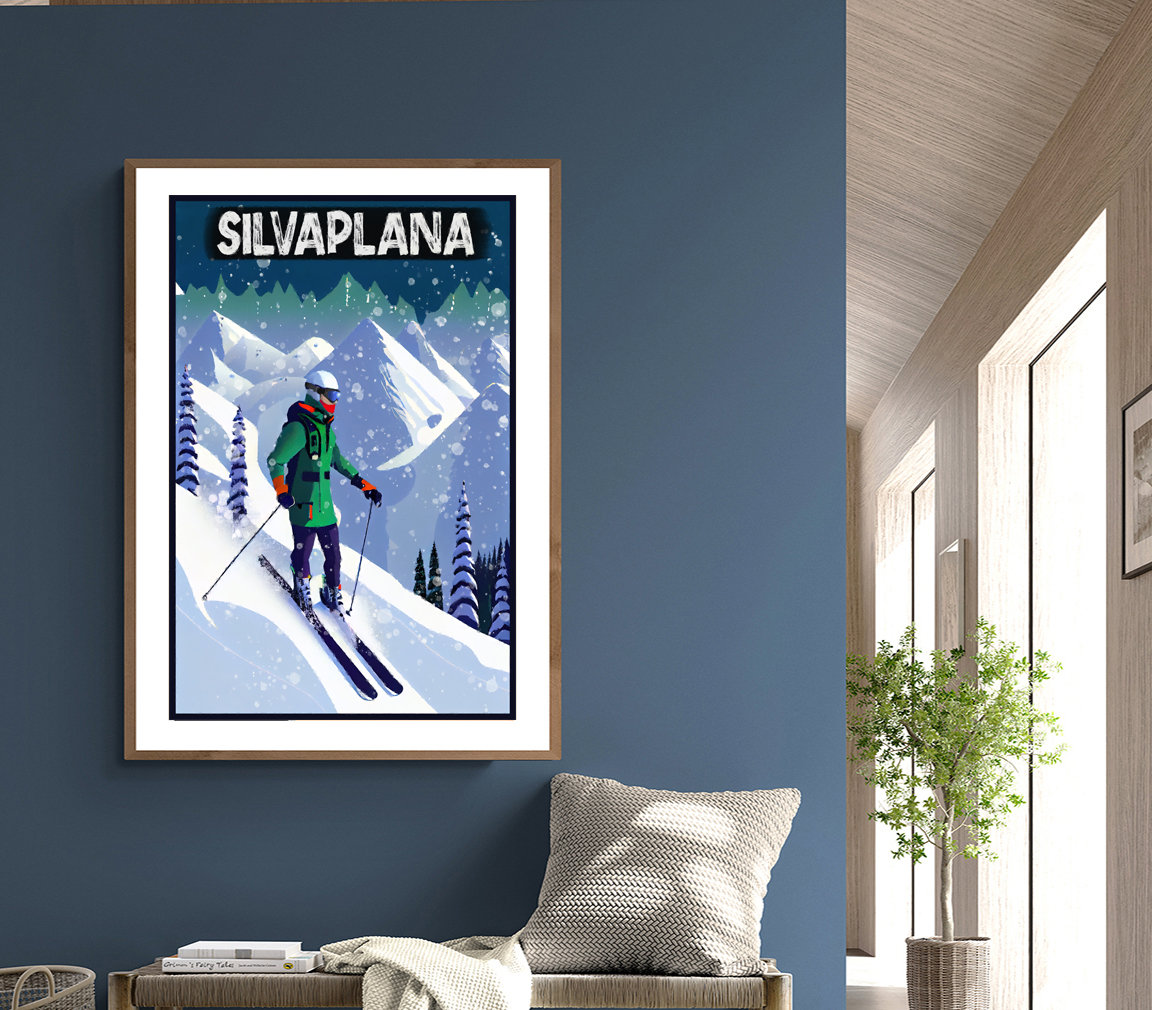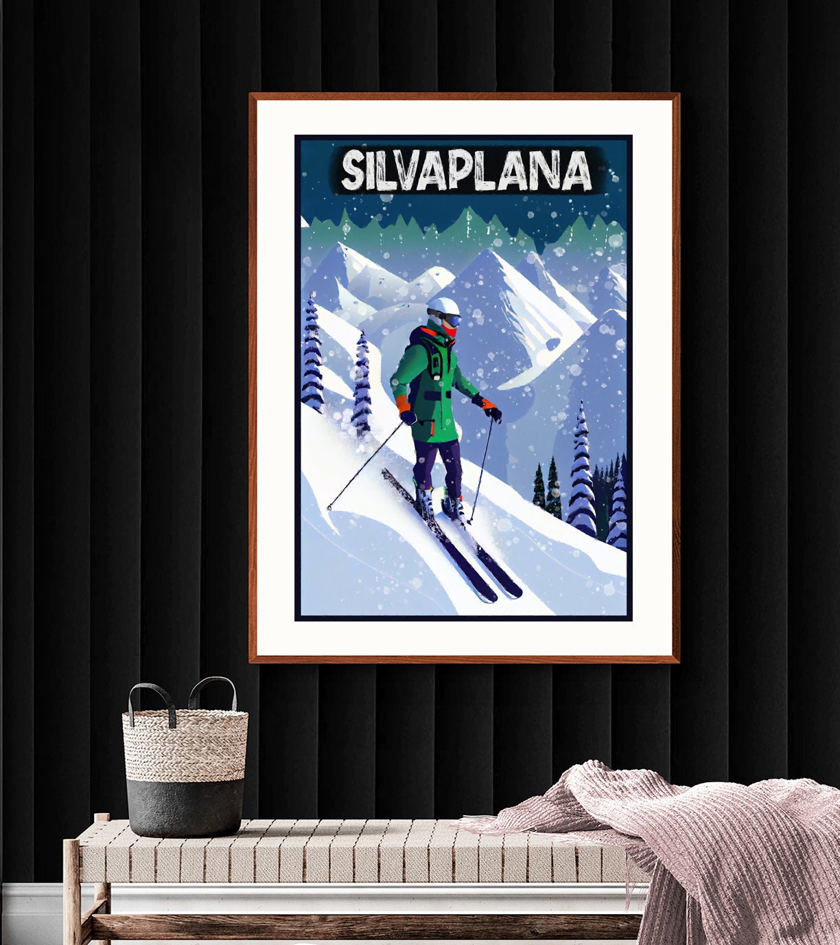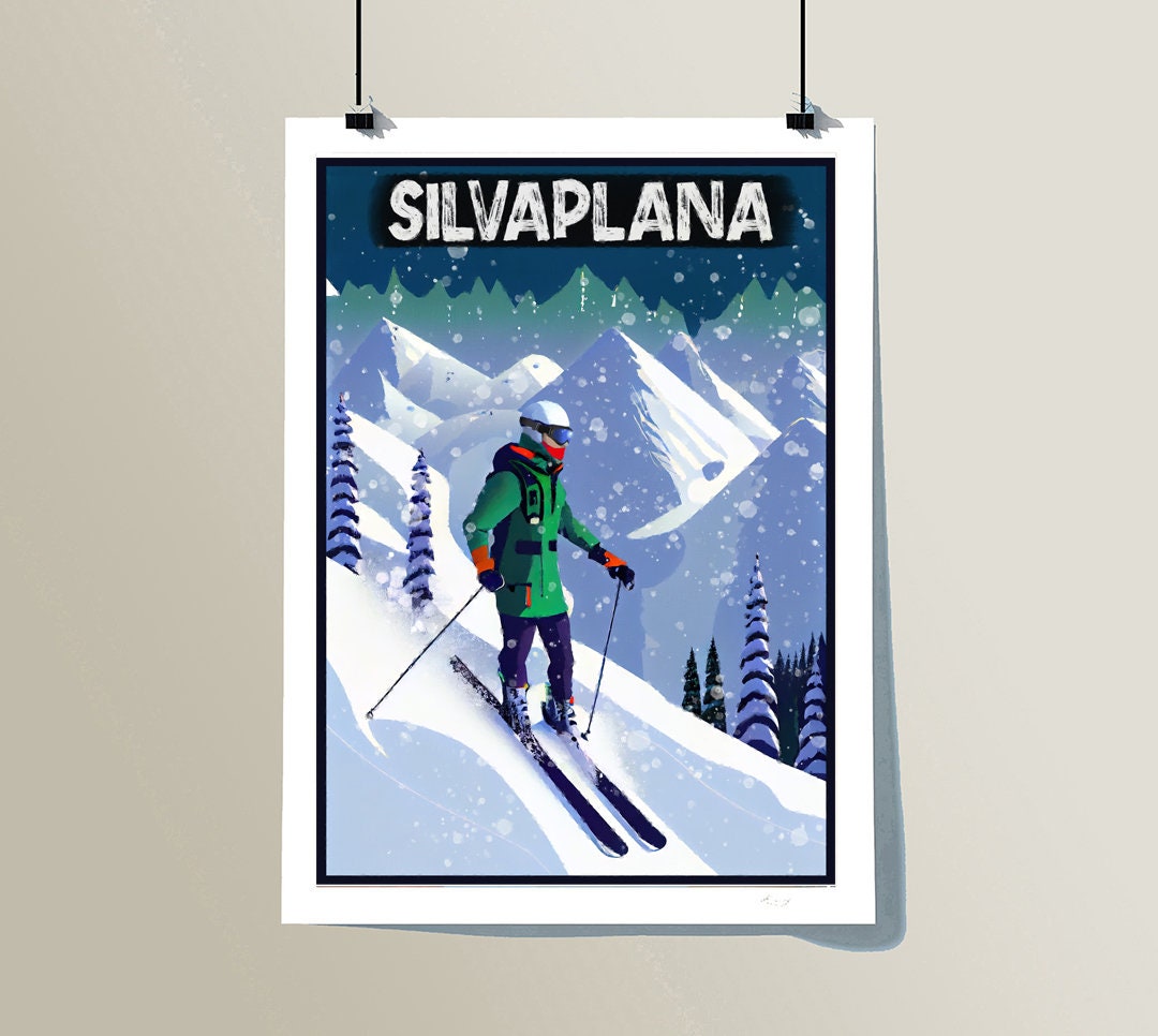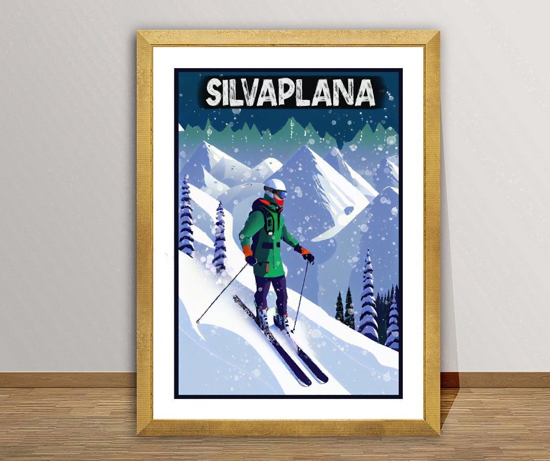 Silvaplana Suisse Vintage Ski Travel Poster - Swiss Alps Print