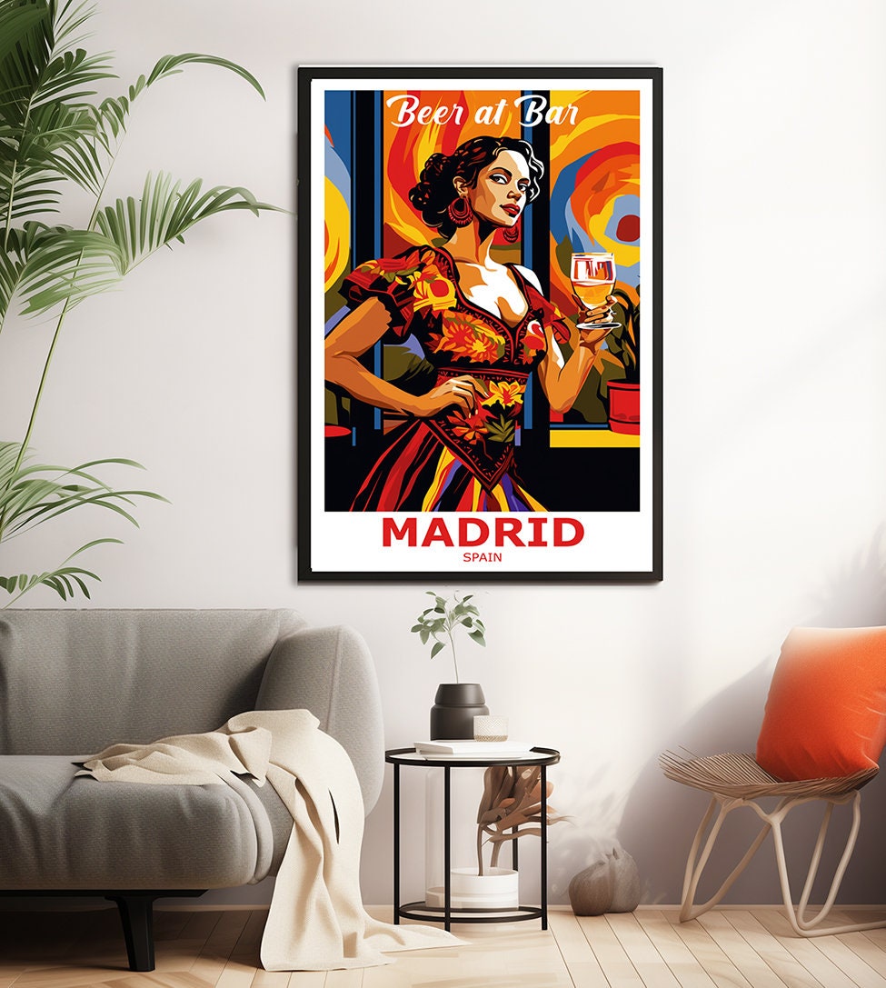 Madrid Spain Travel Poster: Flamenco Dancer with Beer