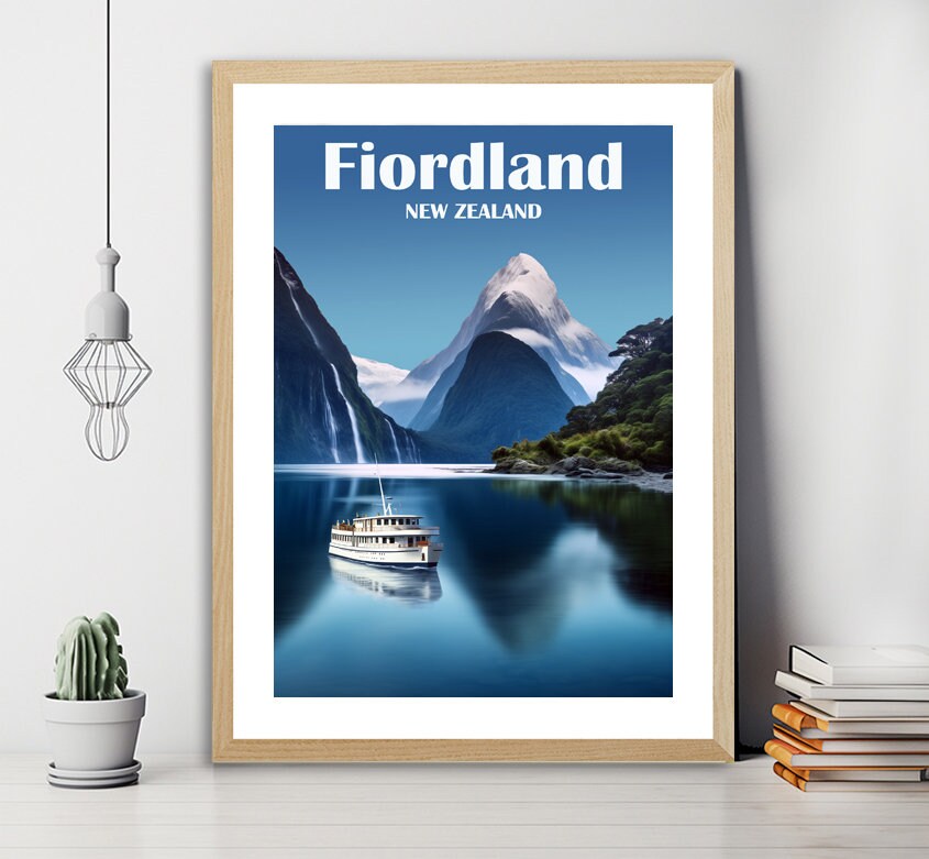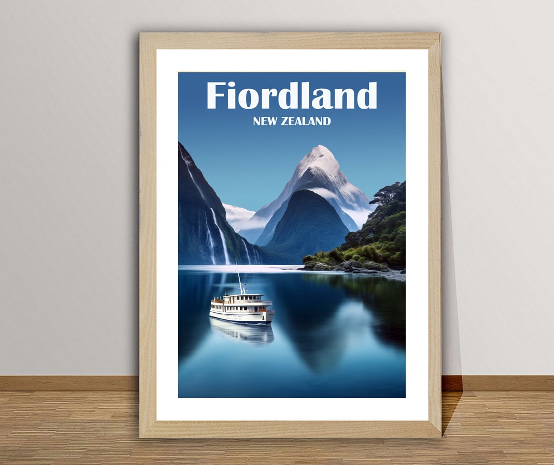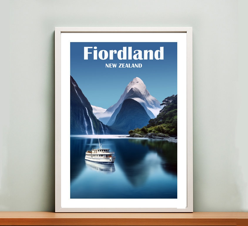 Fiordland National Park Travel Poster: New Zealand South Island Wall Art