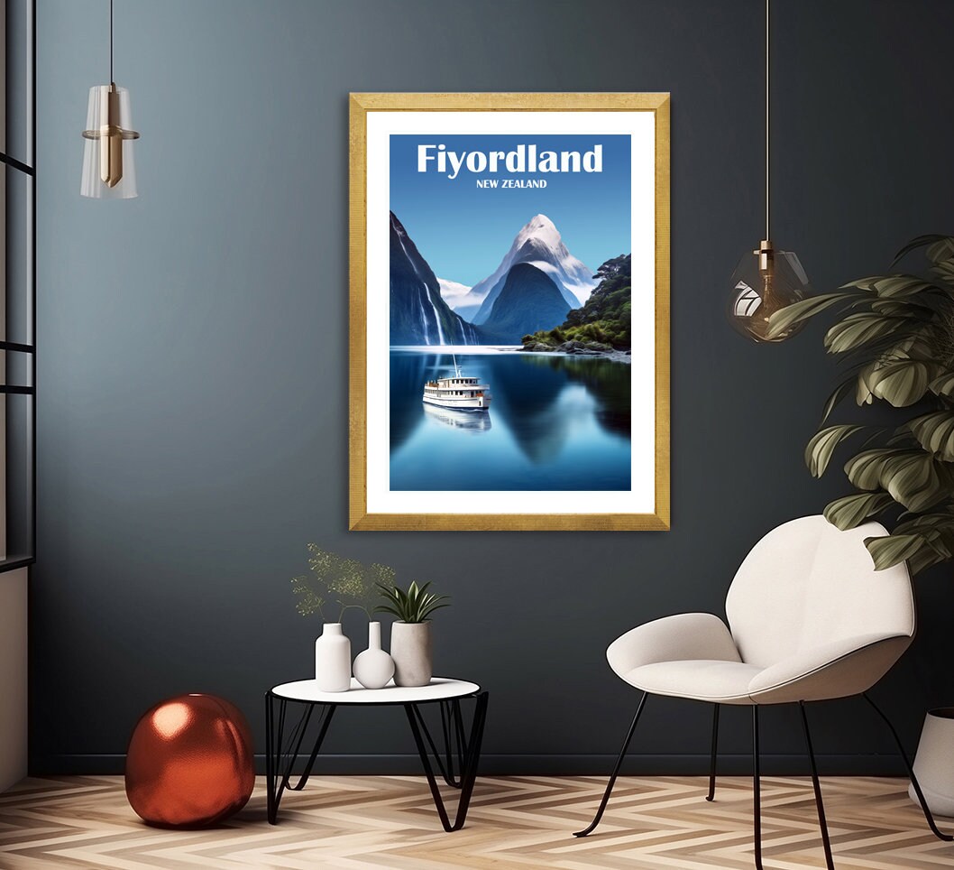 Designed by WallArty with ai Generated. Fiordland National Park, New Zealand Travel Poster - Poster Paper or Canvas Print / Gift Idea / Wall Decor