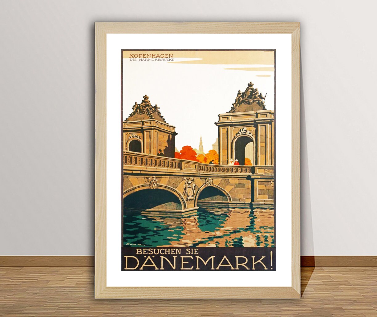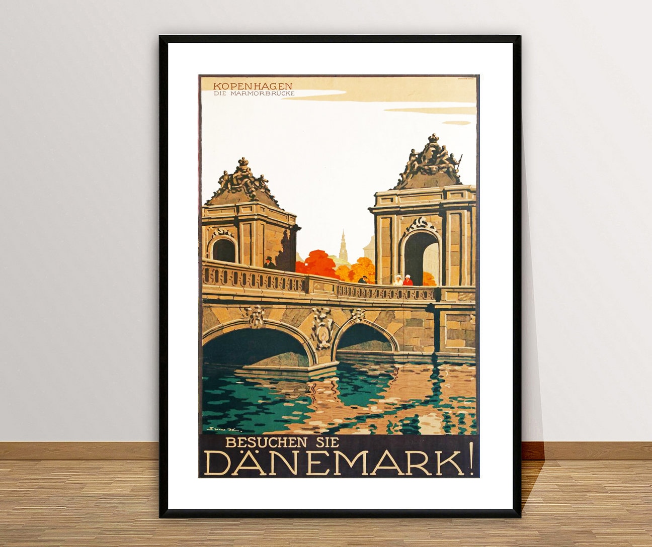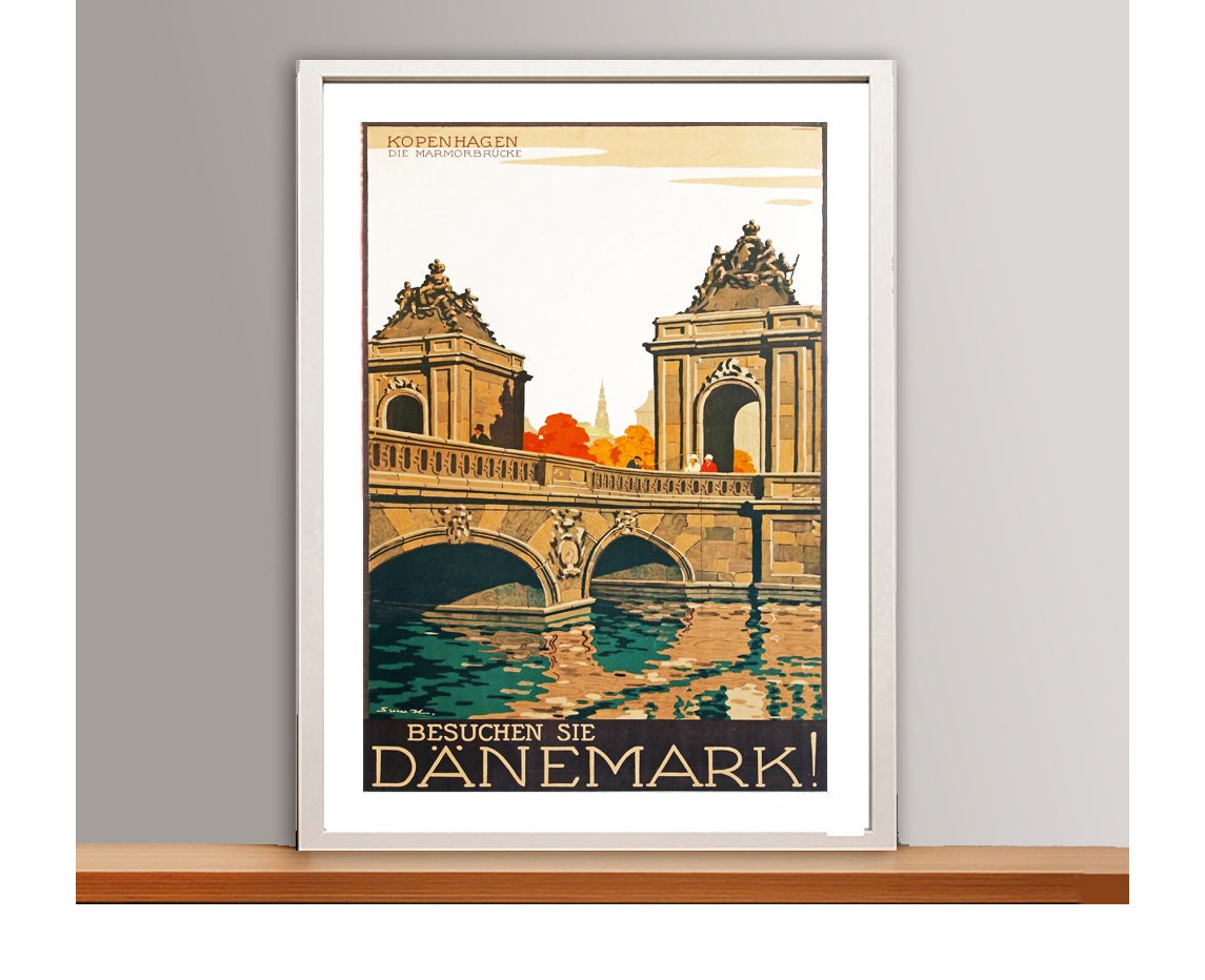 Besuchen Sie Danemark, Kopenhagen die Marmorbrücke Vintage Travel Poster - Poster Paper or Canvas Print / Gift Idea
