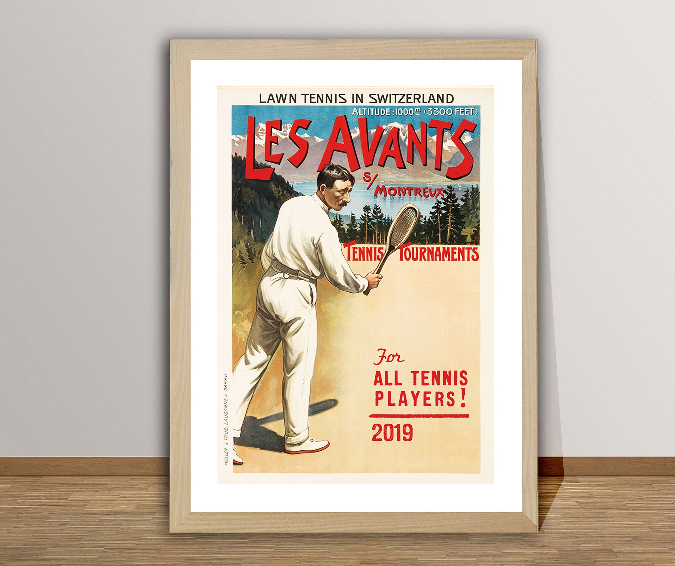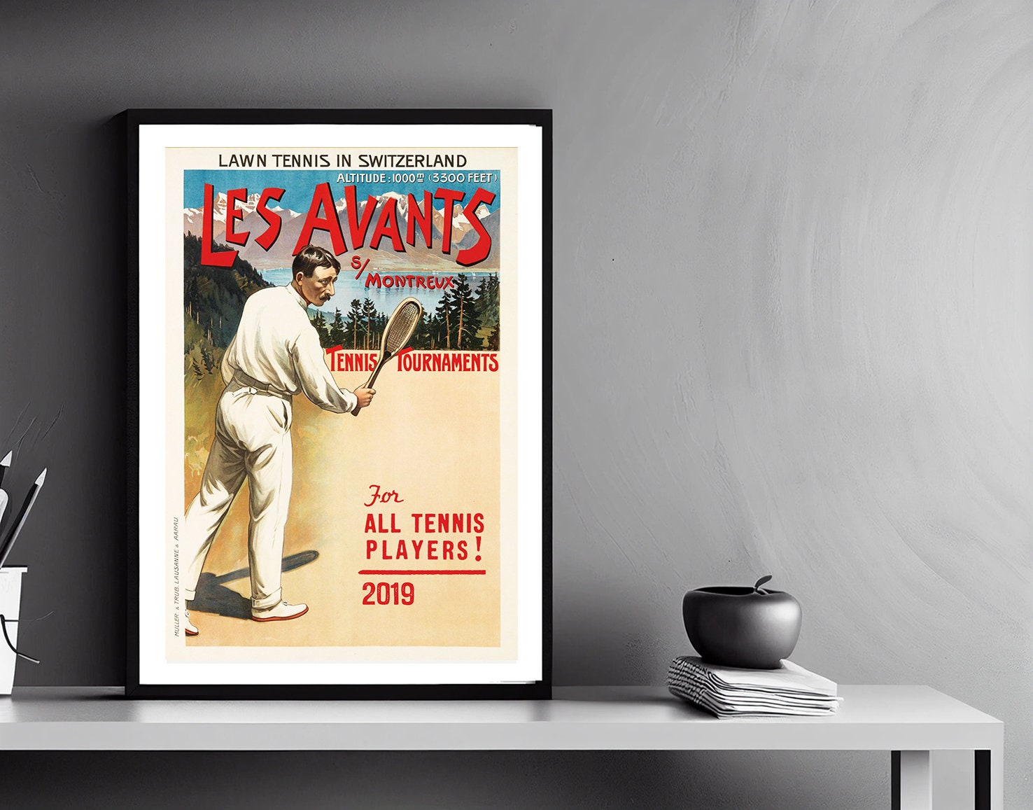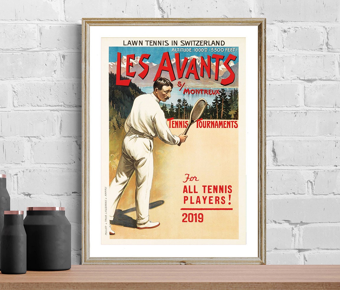 Tennis in Switzerland, Les Avants Montreux Tennis Tournaments Vintage Tennis Poster - Poster Paper or Canvas Print
