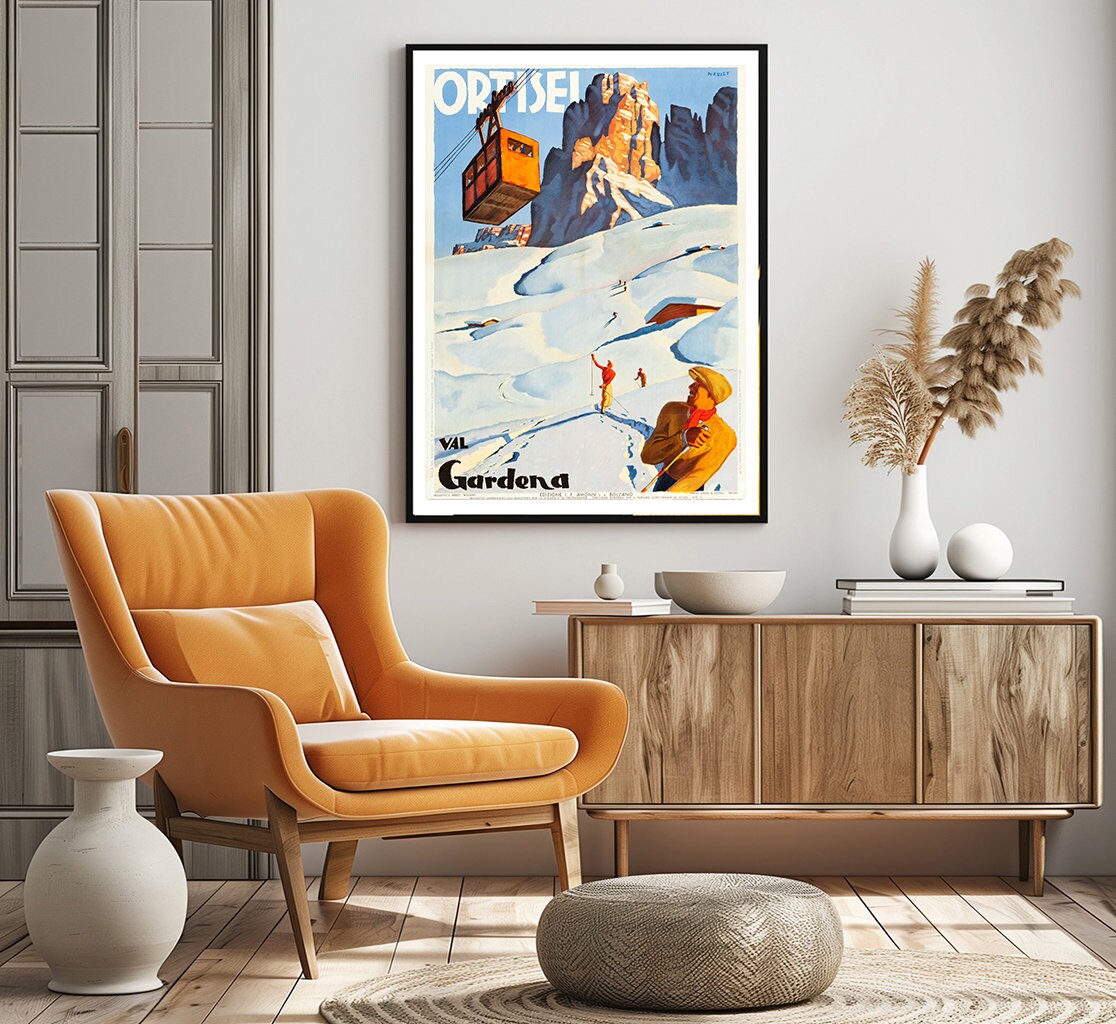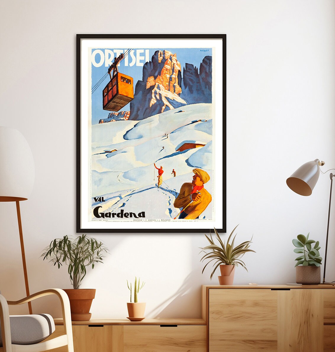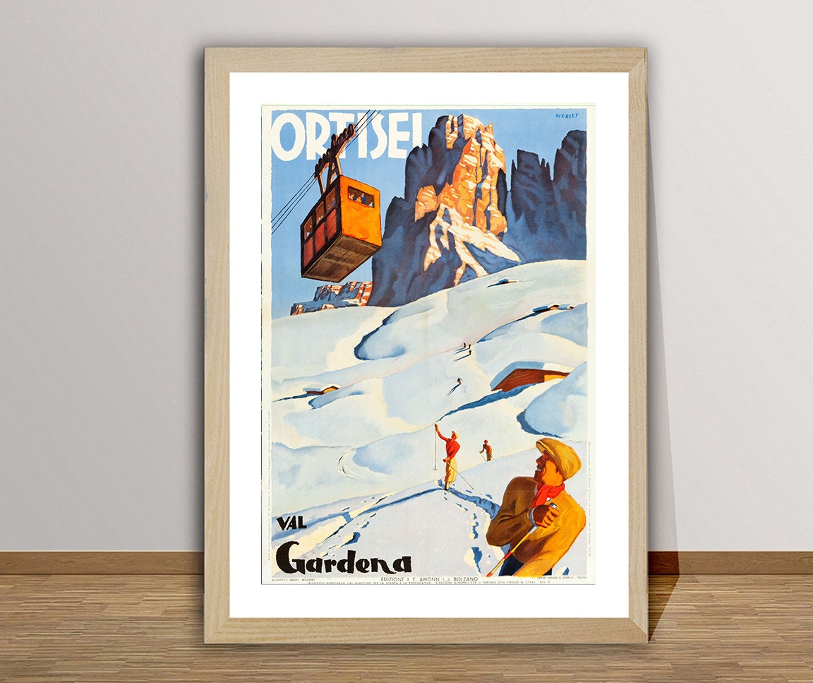 Ortisei Val Gardena, Italy Vintage Ski Poster - Poster Paper or Canvas Print