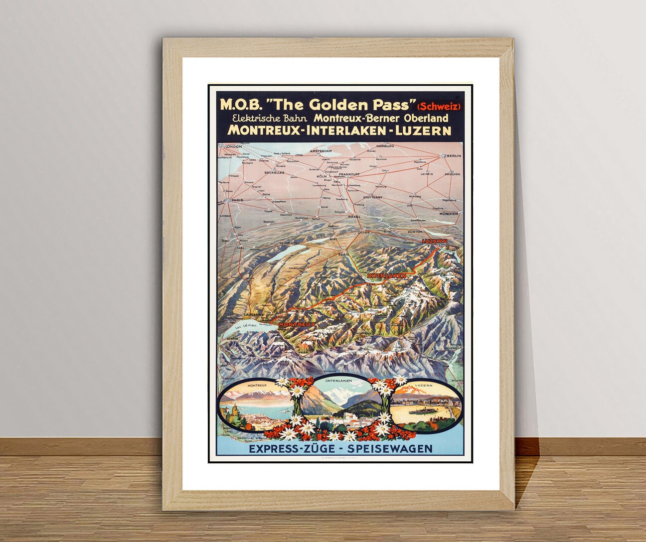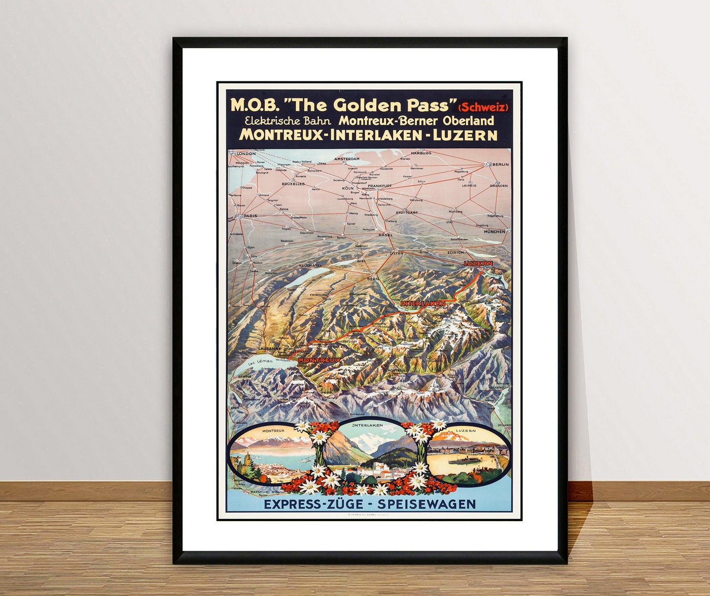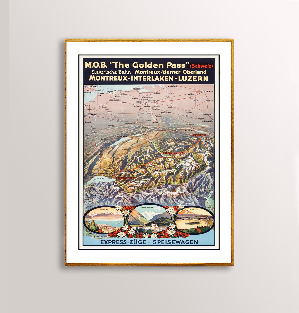 Vintage Golden Pass, Switzerland Travel Poster: Retro Wall Decor