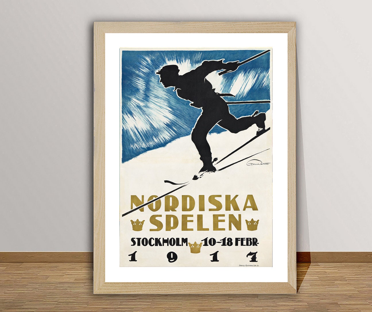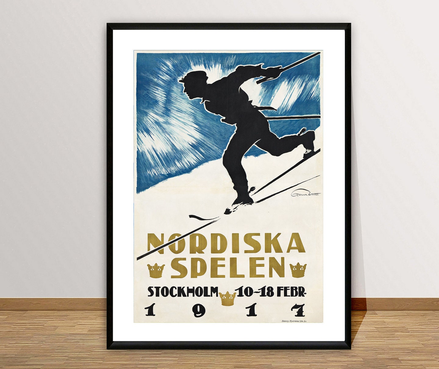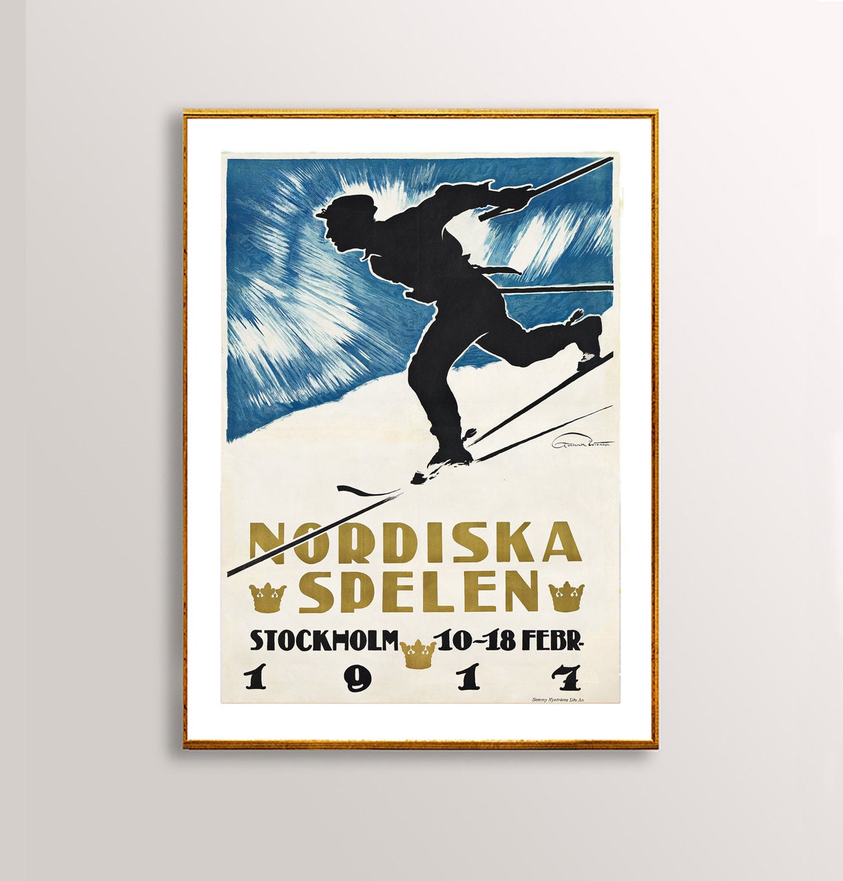 Vintage Ski Poster: Nordiska Spelen Stockholm 1917, Sport Print