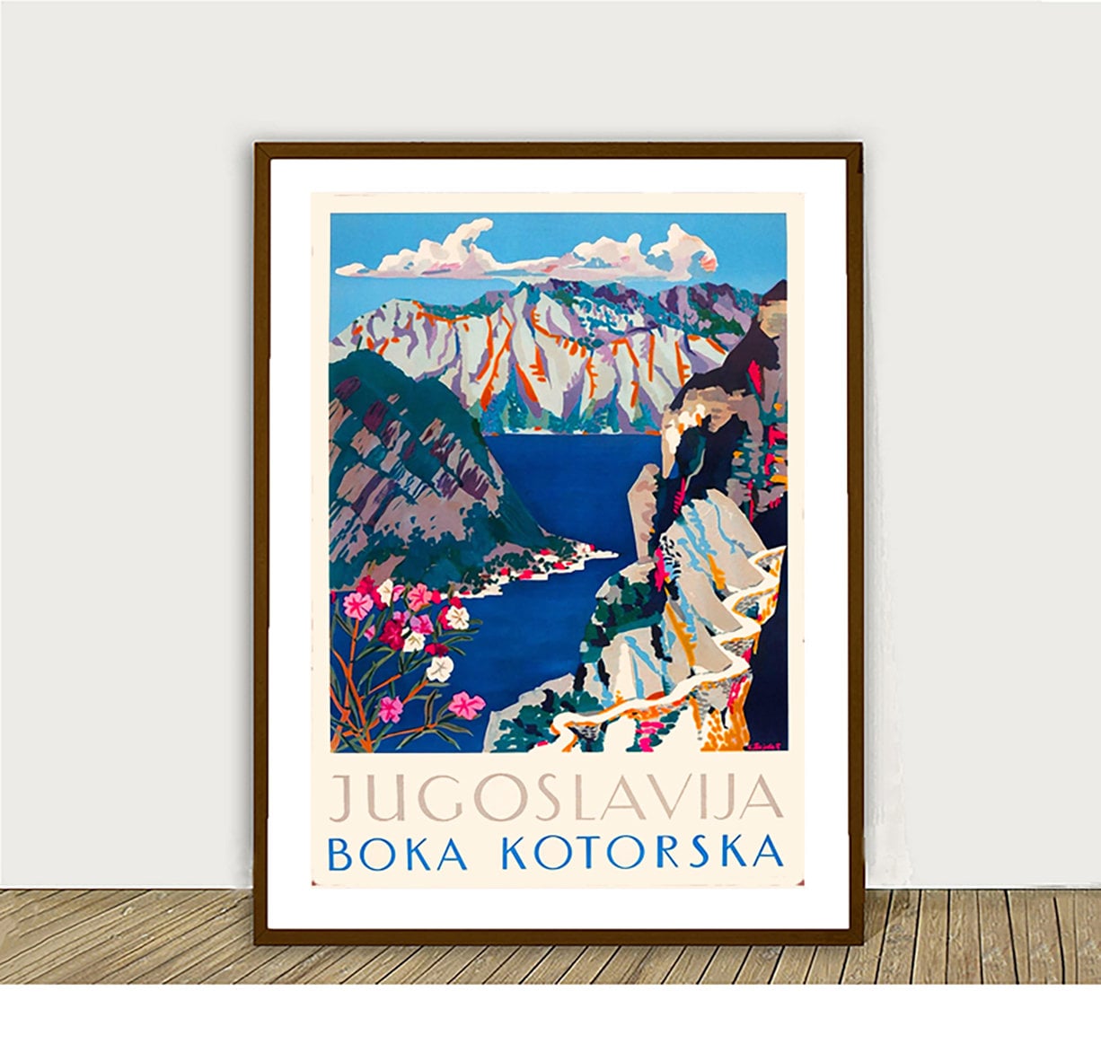 Jugoslavija Boka Kotorska Vintage Travel Poster - Poster Paper or Canvas Print / Gift Idea / Wall Decor