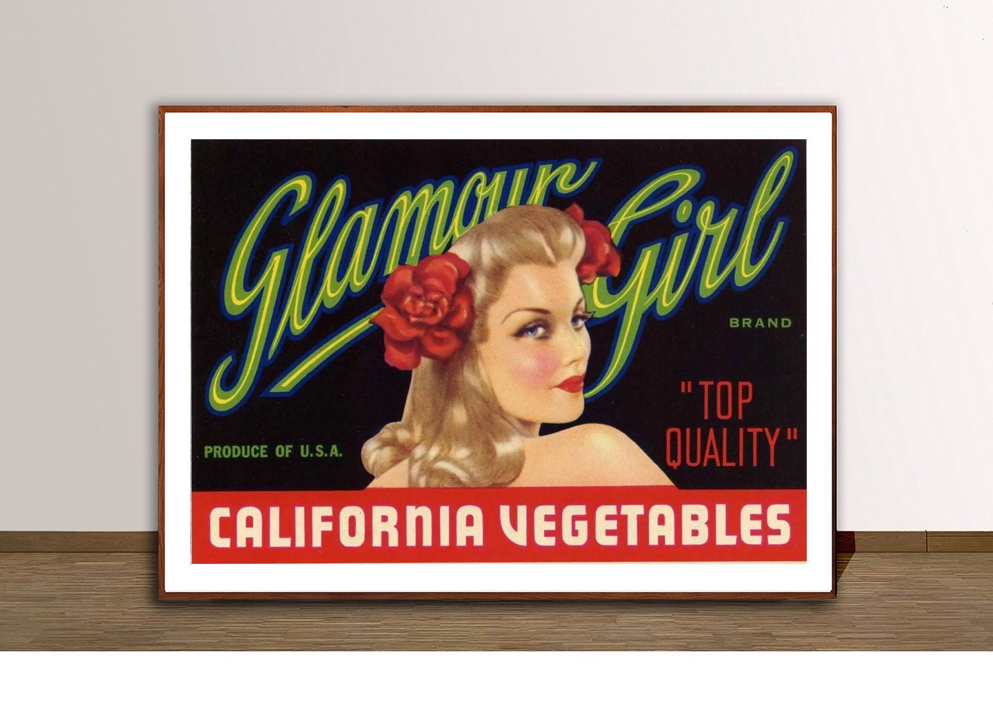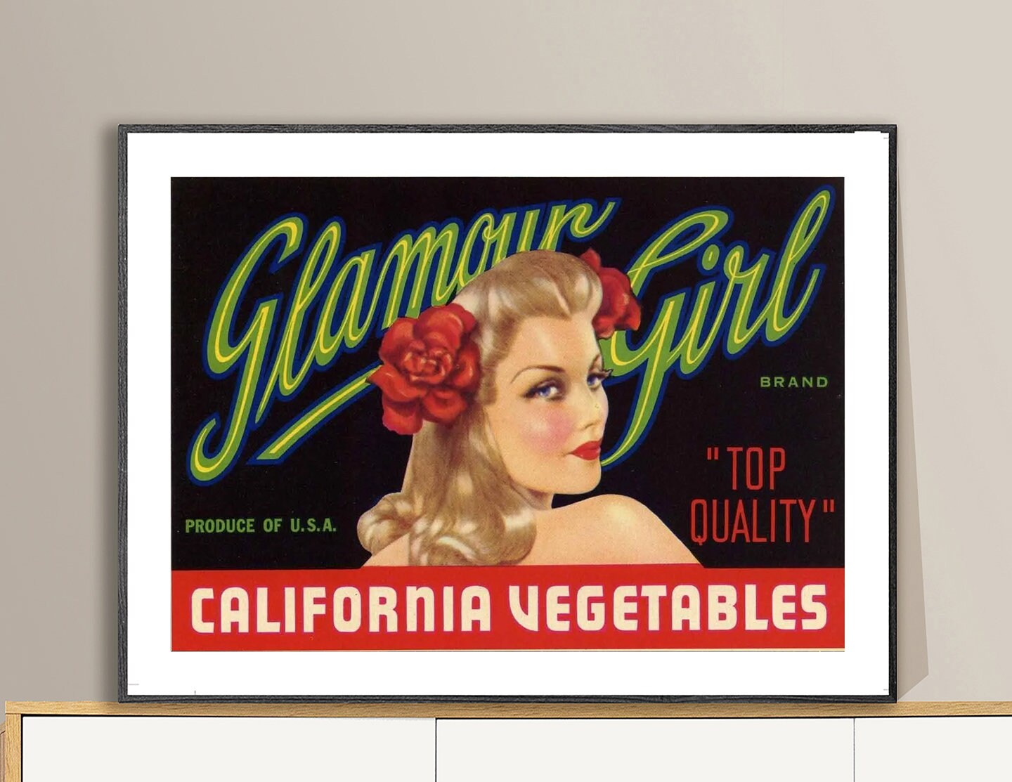 Vintage Glamour Girl, California Vegetables Advertisement Art Print - Reproduction of a Vintage Artwork, Decorative Purposes Wall Decor
