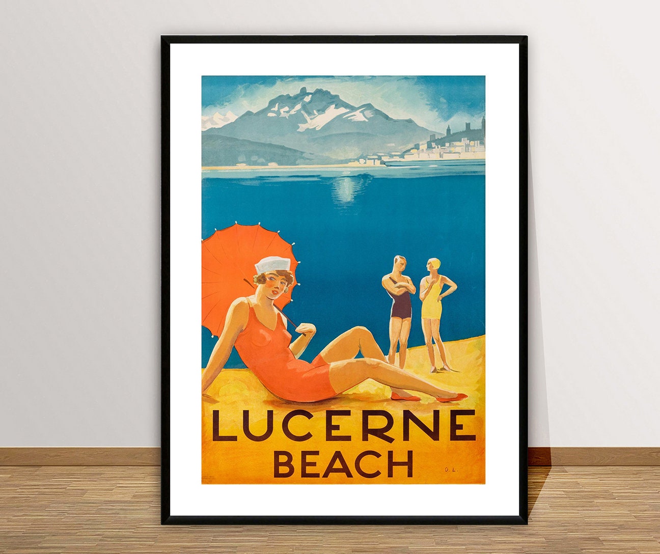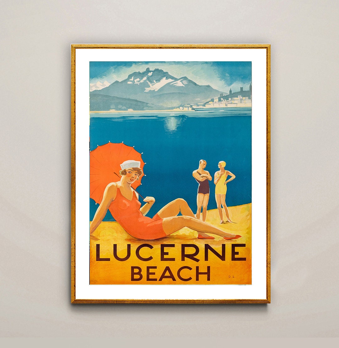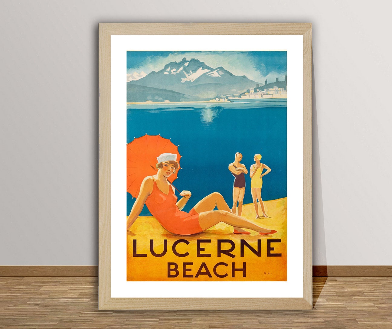 Lucerne Beach, Suisse Vintage Travel Poster - Poster Print or Canvas Print / Gift Idea / Wall Decor