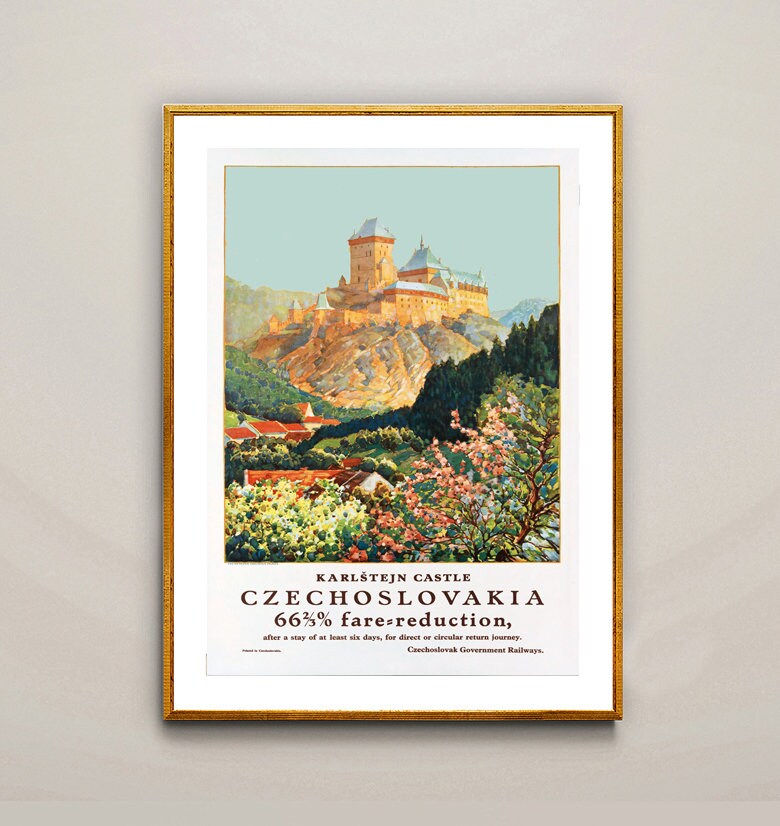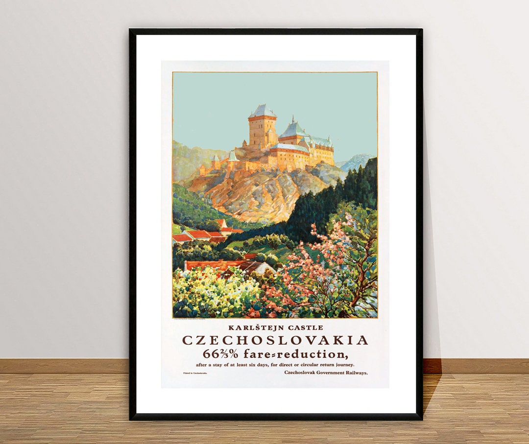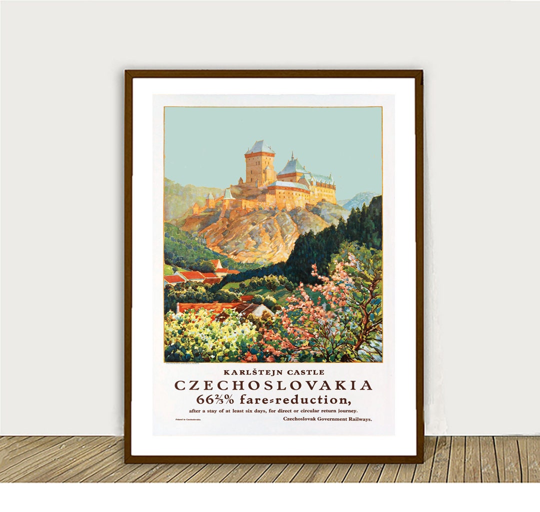 Karlstejn Castle Czechoslovakia Vintage Travel Poster - Poster Paper or Canvas Print, Wall Decor