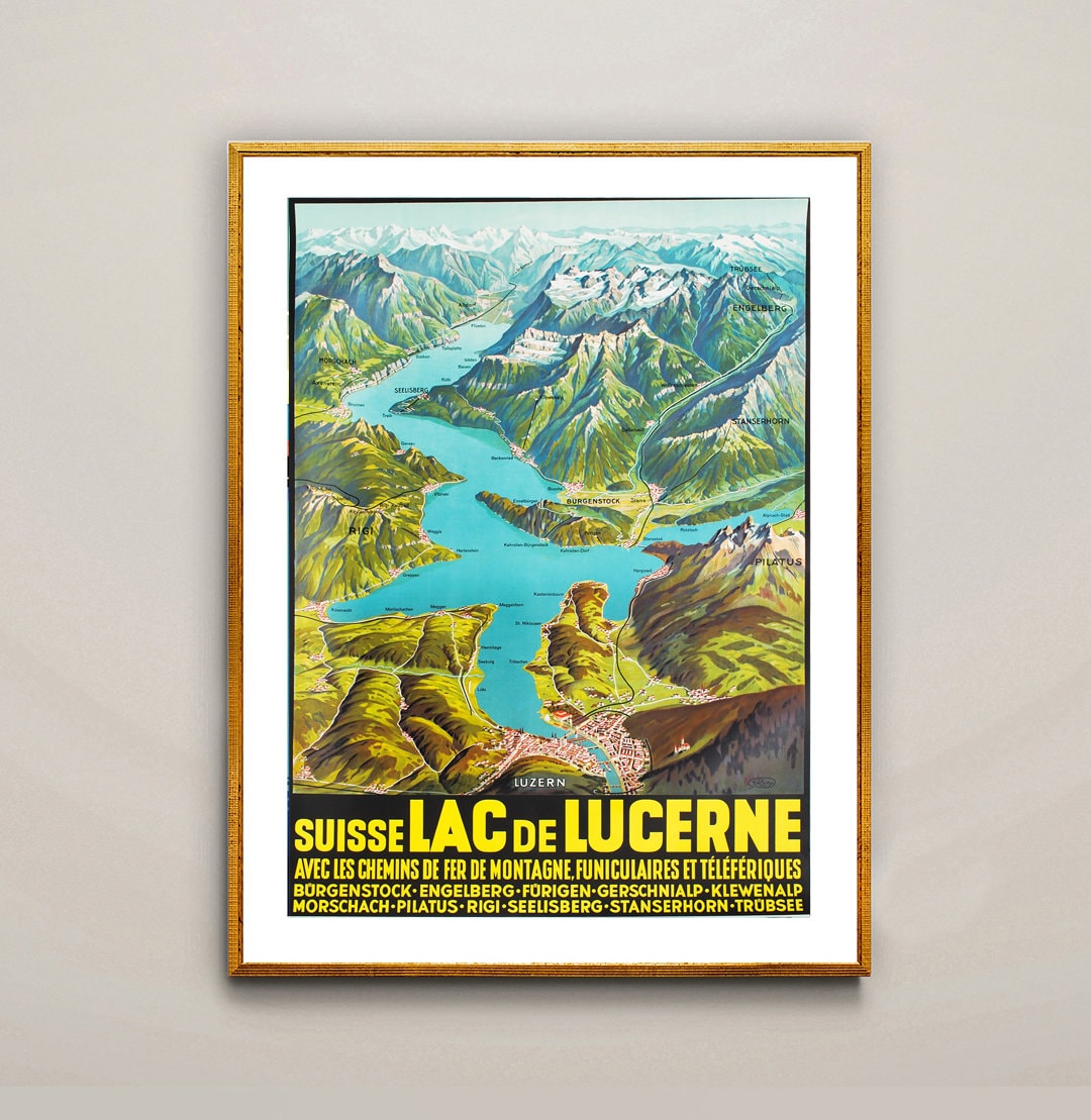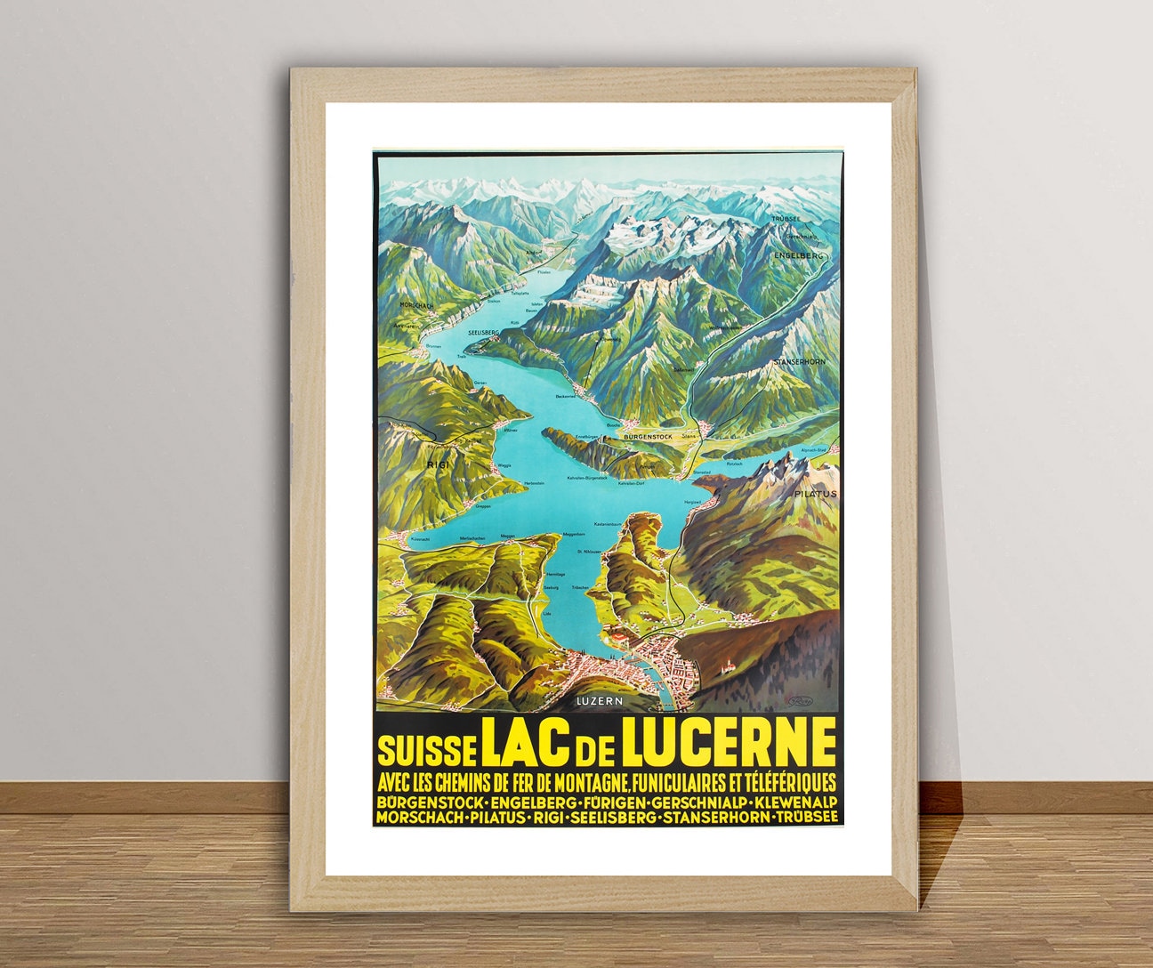 Lake Lucerne Vintage Travel Poster: Suisse Mountain Railways
