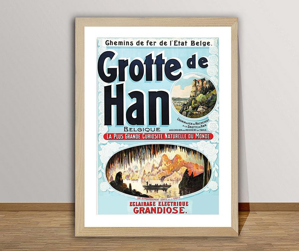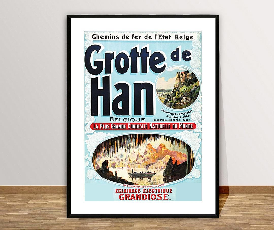 Grotte de Han Vintage Travel Poster, Belgium Wall Art