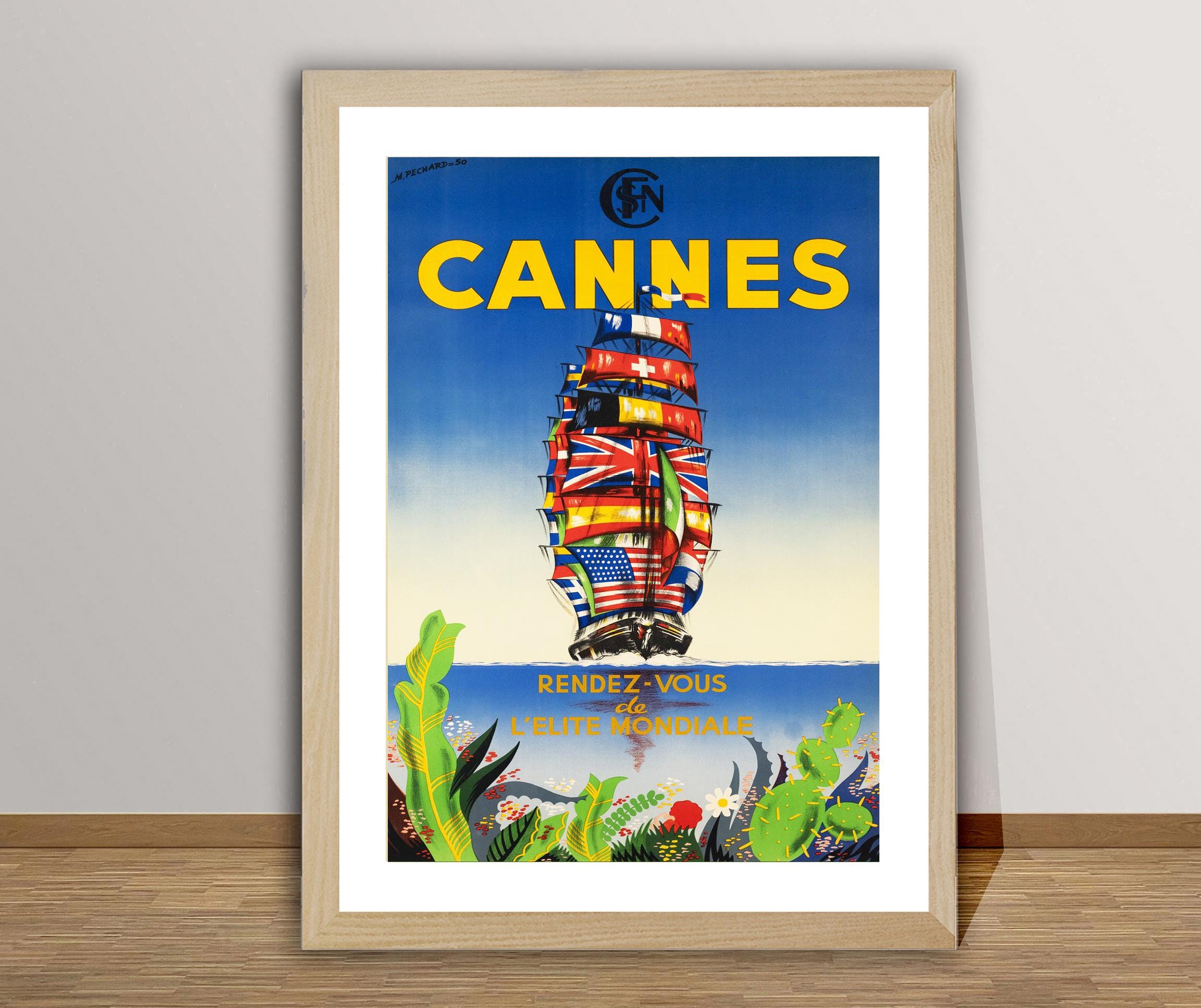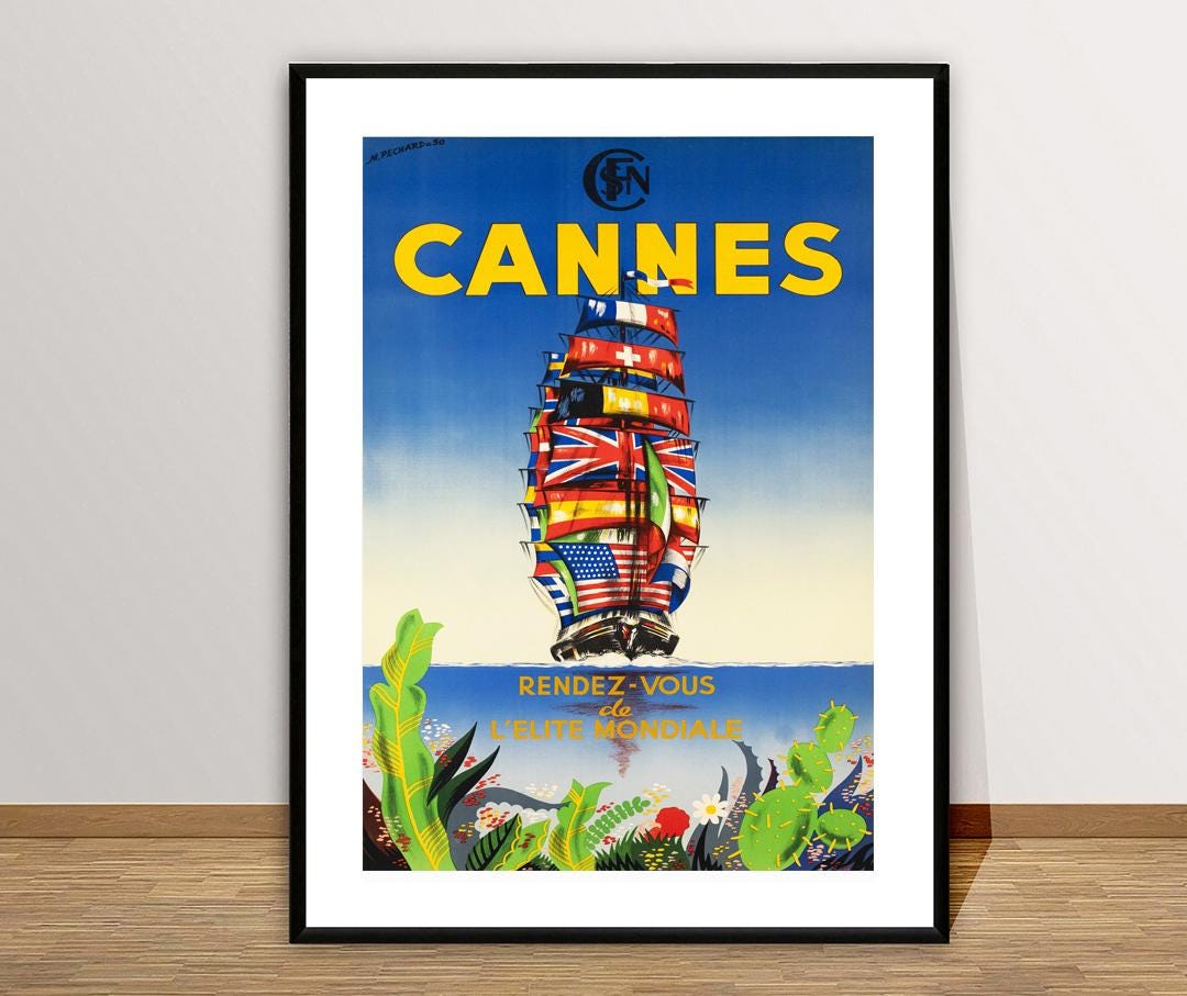 Cannes, Rendez Vous de L'Elite Mondiale, France Vintage Travel Poster - Poster Paper or Canvas Print / Gift Idea