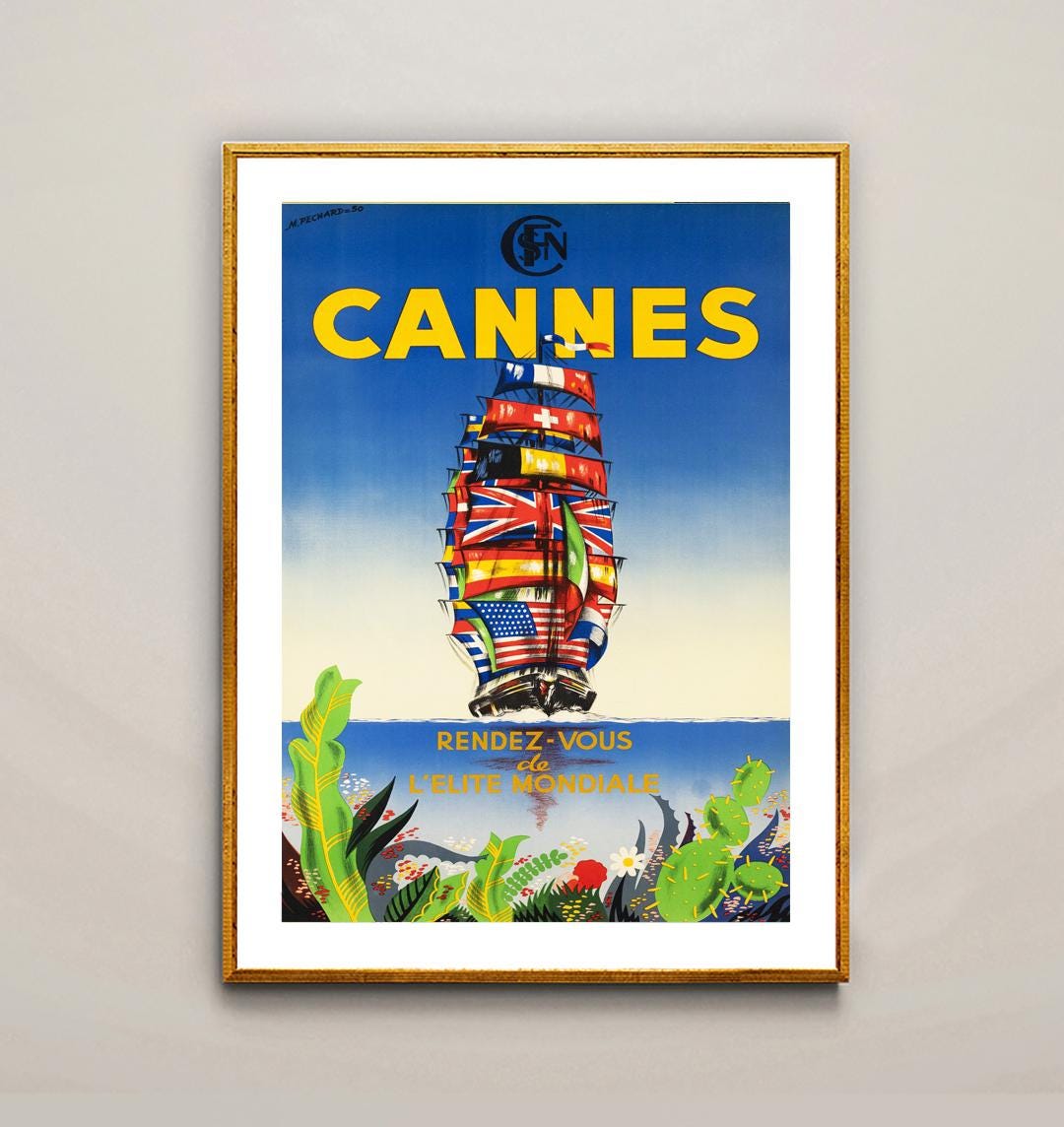 Cannes France Vintage Travel Poster: Rendez Vous de L'Elite Mondiale