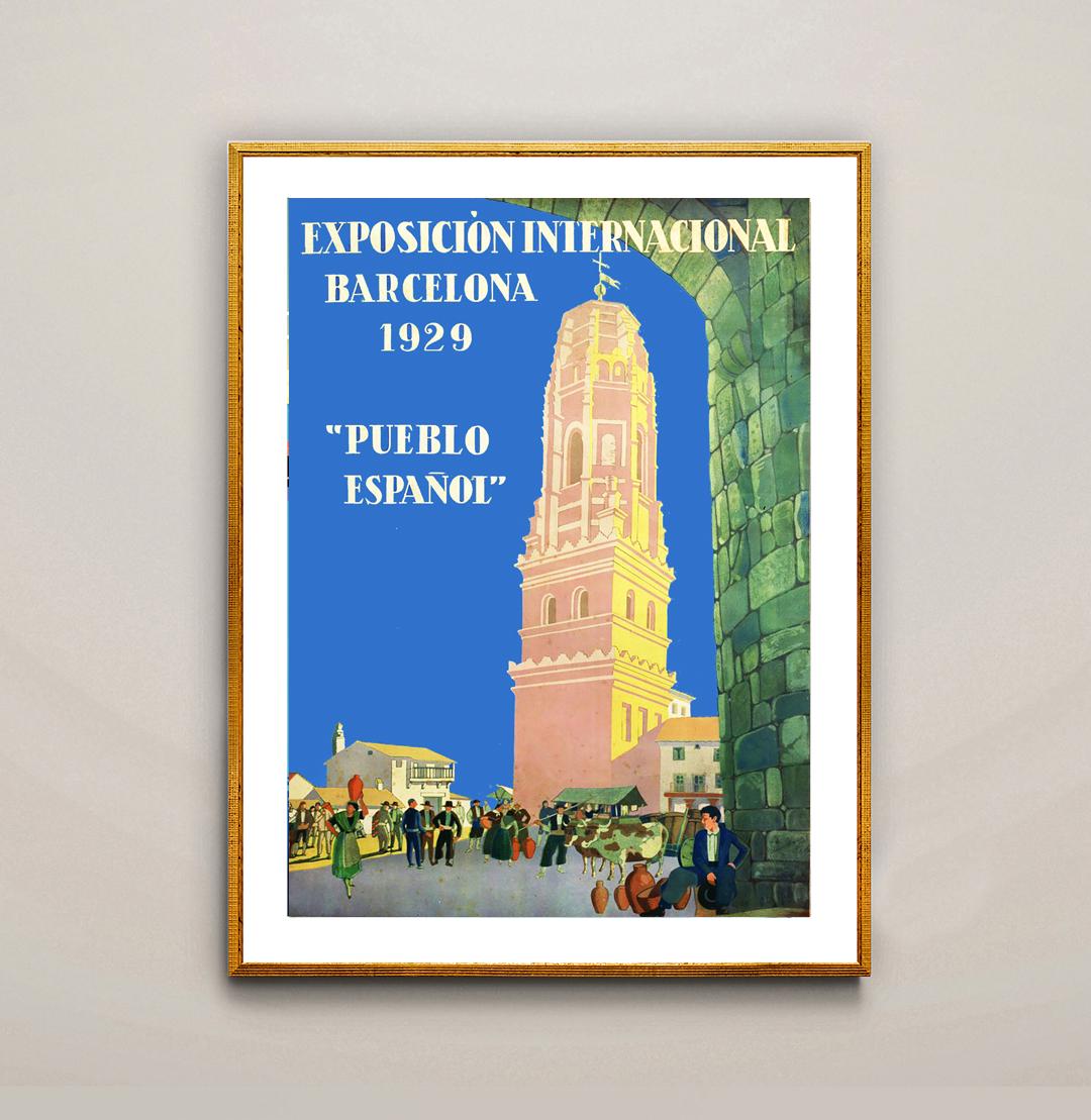 Barcelona 1929 Exhibition Vintage Travel Poster - Pueblo Espanol