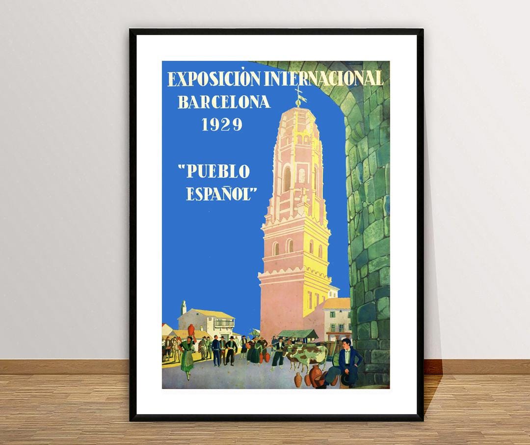 Exposicion Internacional Barcelona, 1929 Pueblo Espanol Vintage Travel Poster - Poster Paper or Canvas Print / Gift Idea / Wall Decor