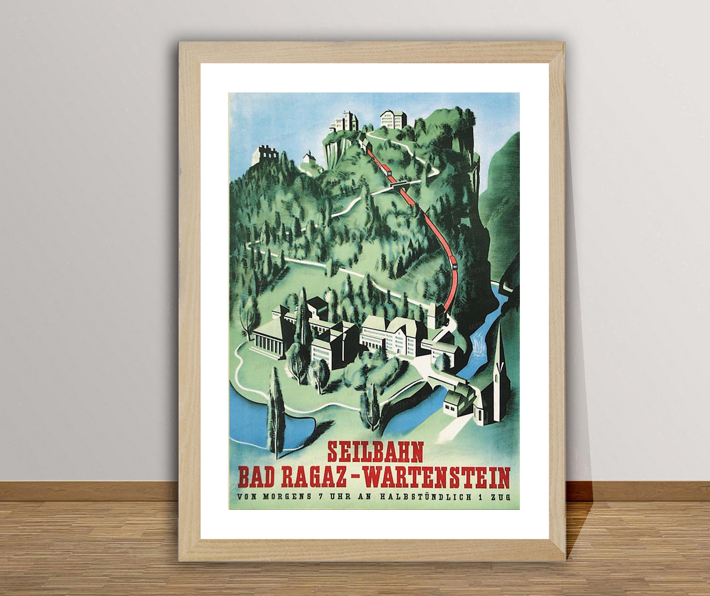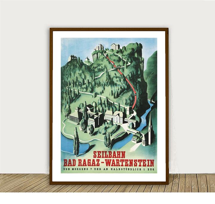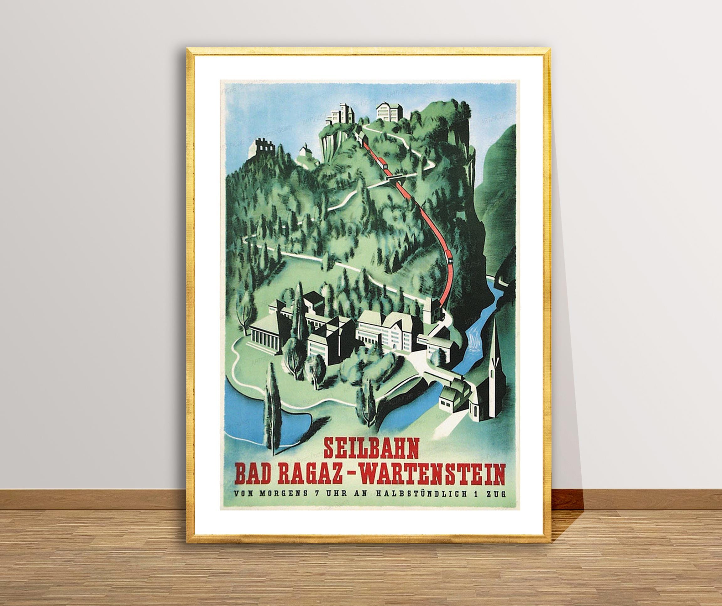 Seilbahn Bad Ragaz, Wartenstein, Suisse Vintage Travel Poster - Poster Paper or Canvas Print