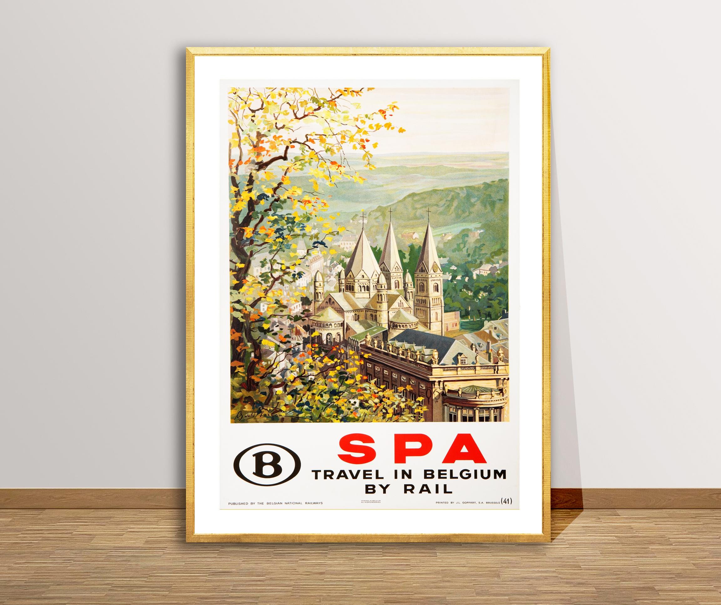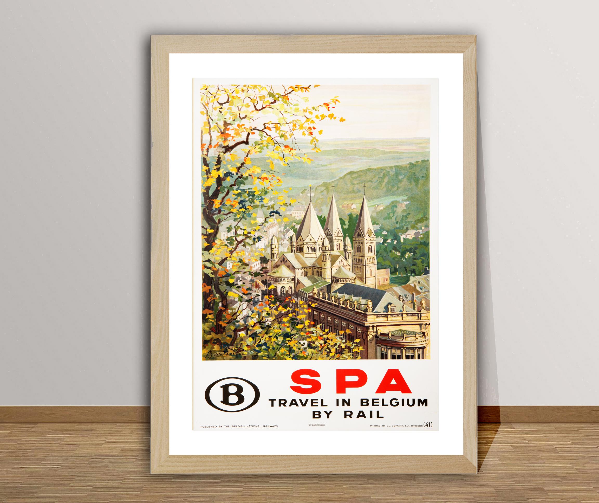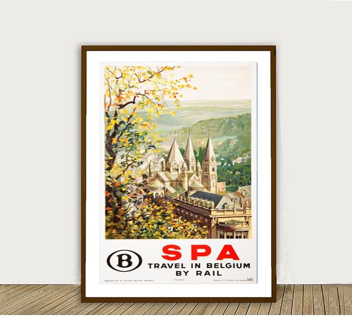 Vintage Belgium Travel Poster: SPA by Rail, Retro Wall Art