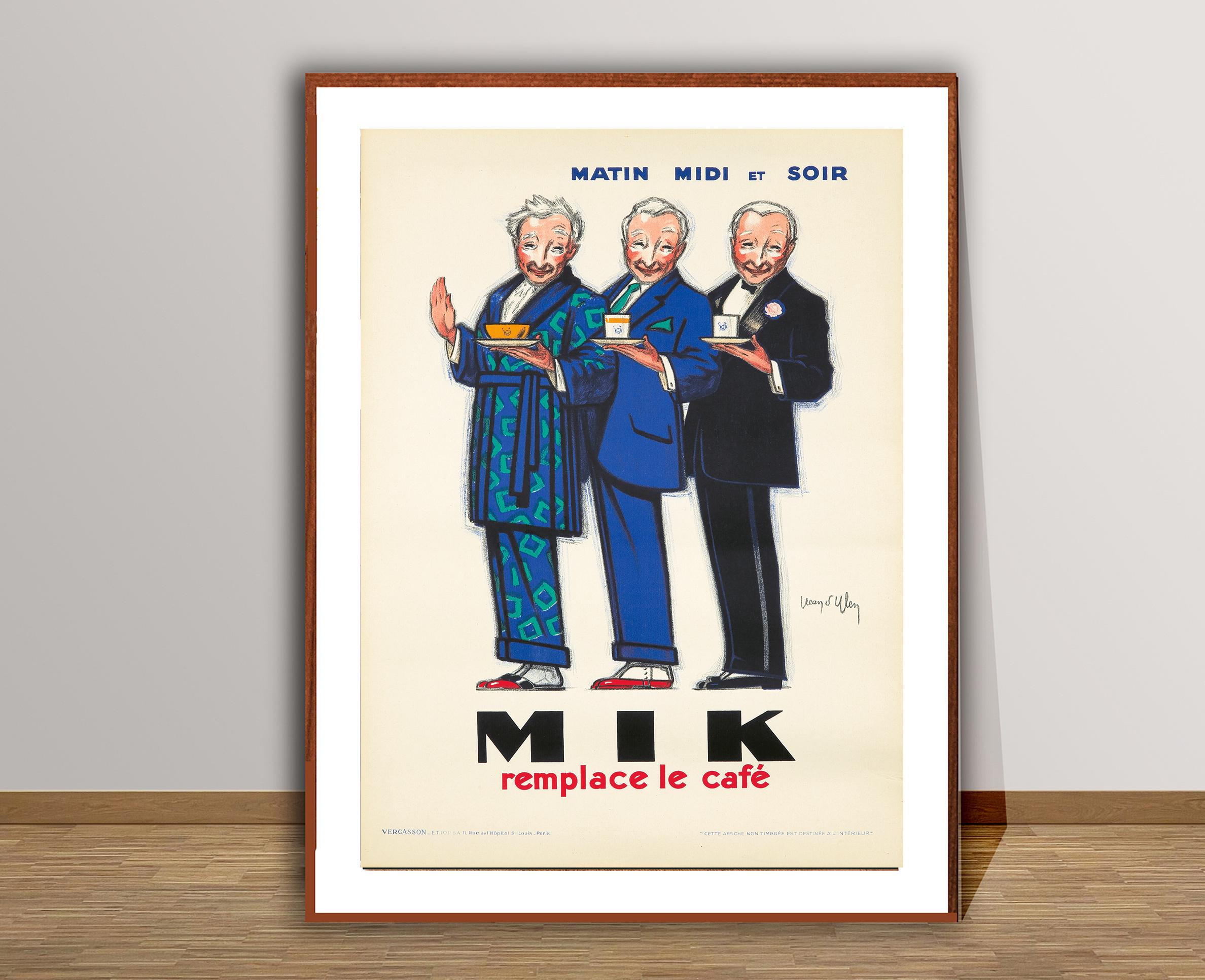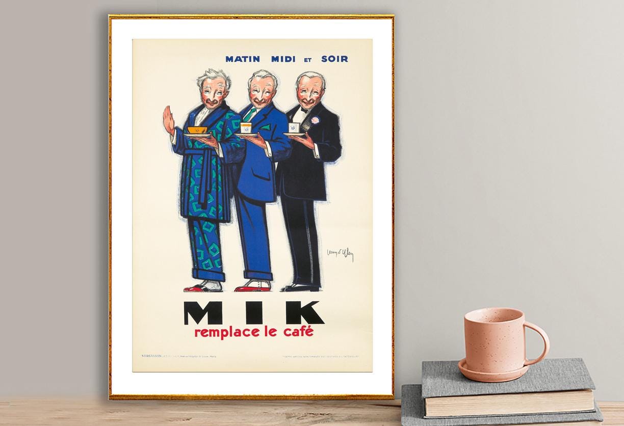 Matin, Midi et Soir Mik Remplace Le Cafe Vintage Food&Drink Poster - Poster Paper or Canvas Print / Gift Idea / Wall Decor