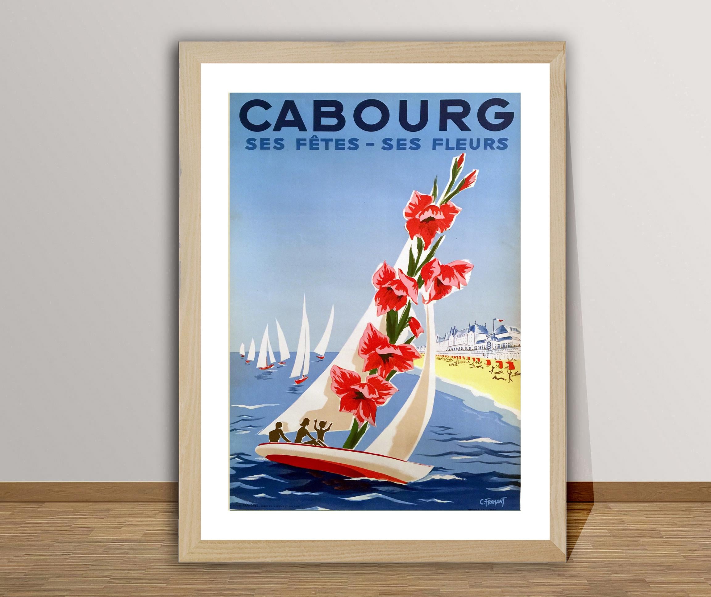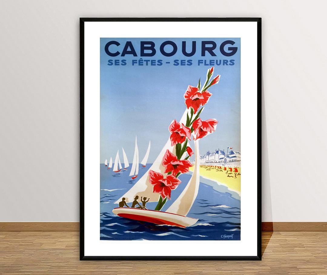 Cabourg France Vintage Travel Poster: Floral Sailboat Art