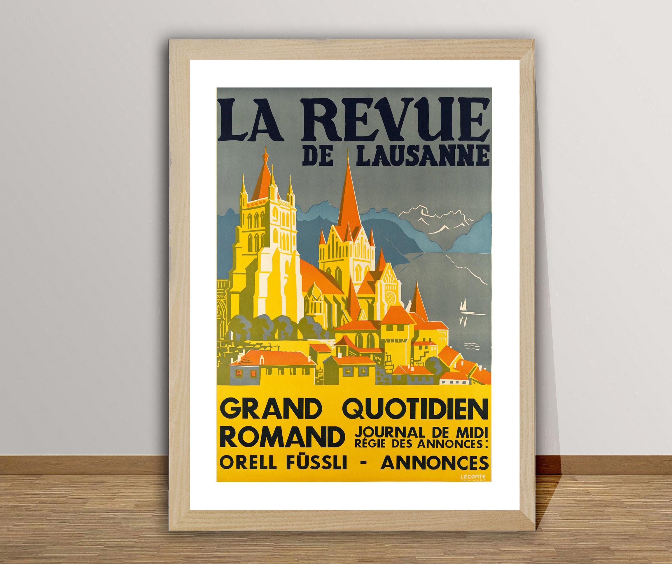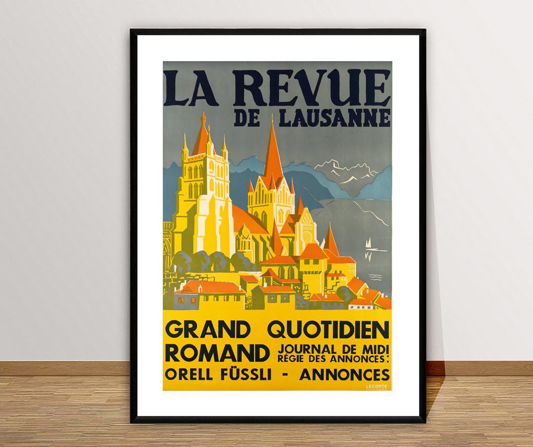 La Revue de Lausanne Grand Quotidien Romand, Suisse Vintage Travel Poster - Poster Paper or Canvas Print / Gift Idea