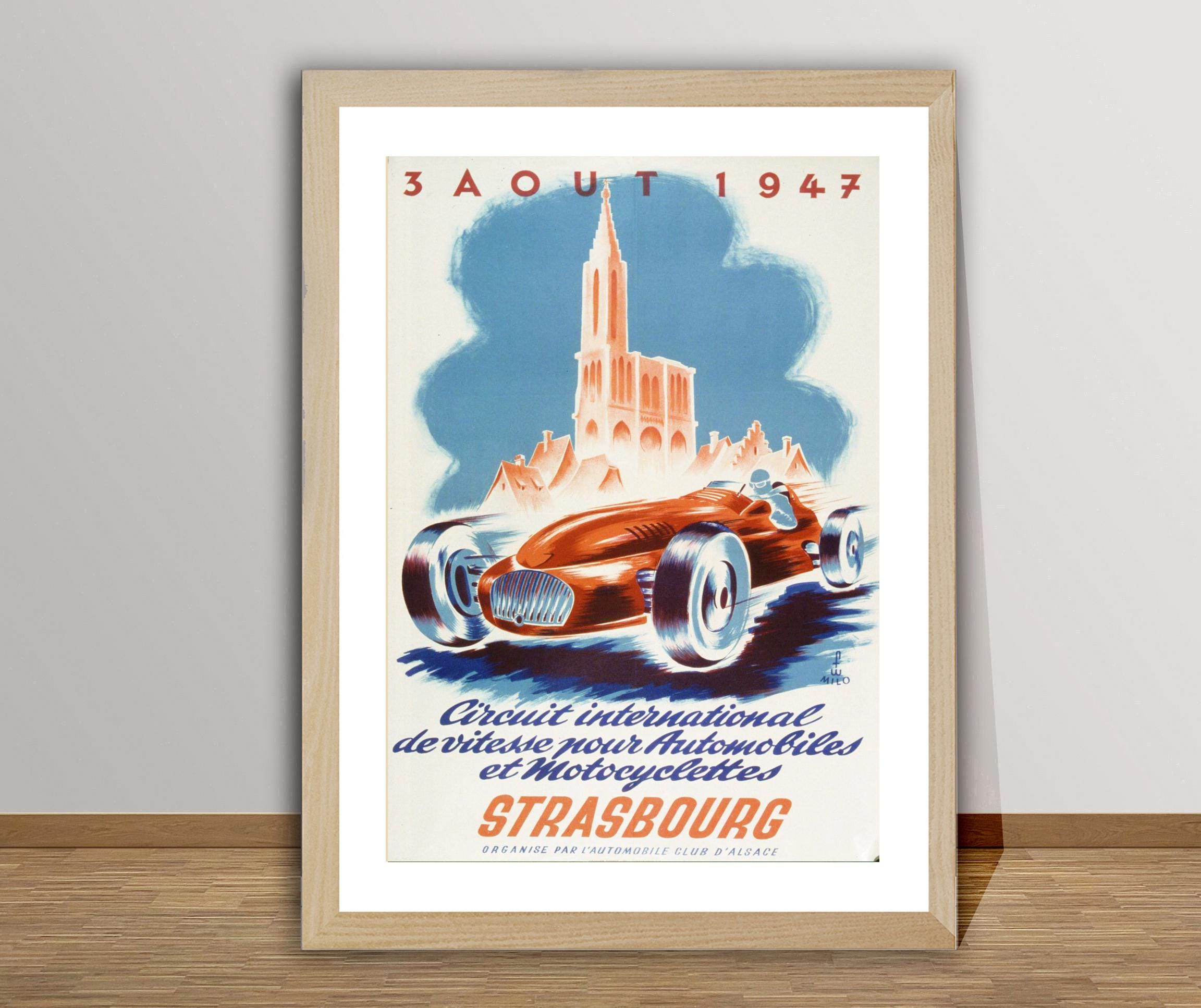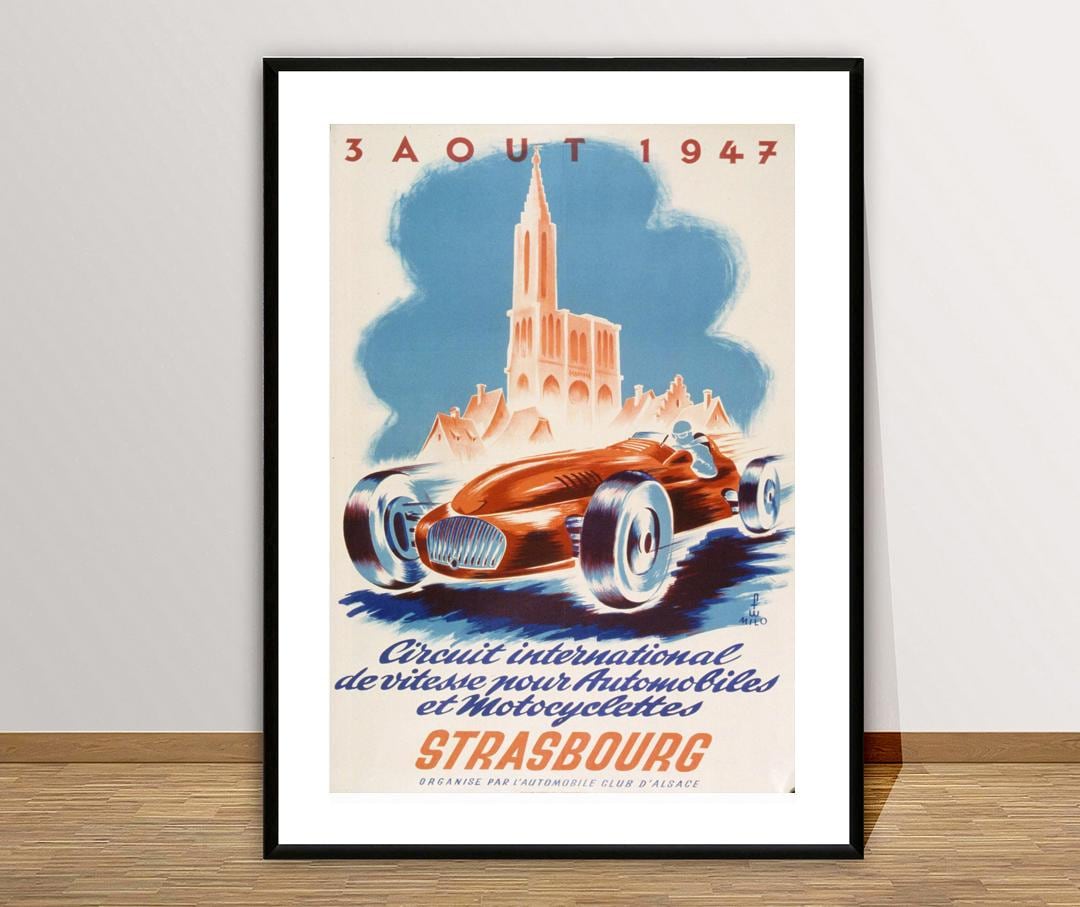 Strasbourg International Speed ​​Circuit for Automobiles and Motorcycles Vintage Grand Prix Poster - Poster Paper or Canvas Print / Gift Idea / Wall Decor
