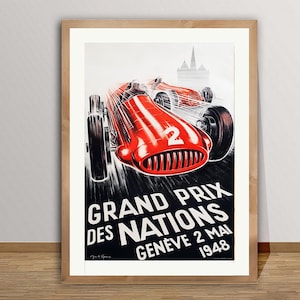 Printed on high quality paper, cotton canvas or adhesive sticker paper. A high quality reproduction of vintage grand prix poster. Professional packaging for safe shipping. All images (dimensions) include a white border. (The white border can be removed. Please write a note when ordering.)