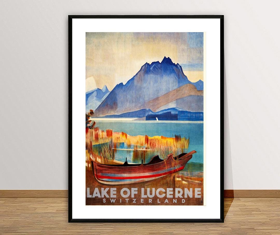 Lake of Lucerne, Switzerland Vintage Travel Poster - Poster Paper or Canvas Print / Gift Idea / Wall Decor