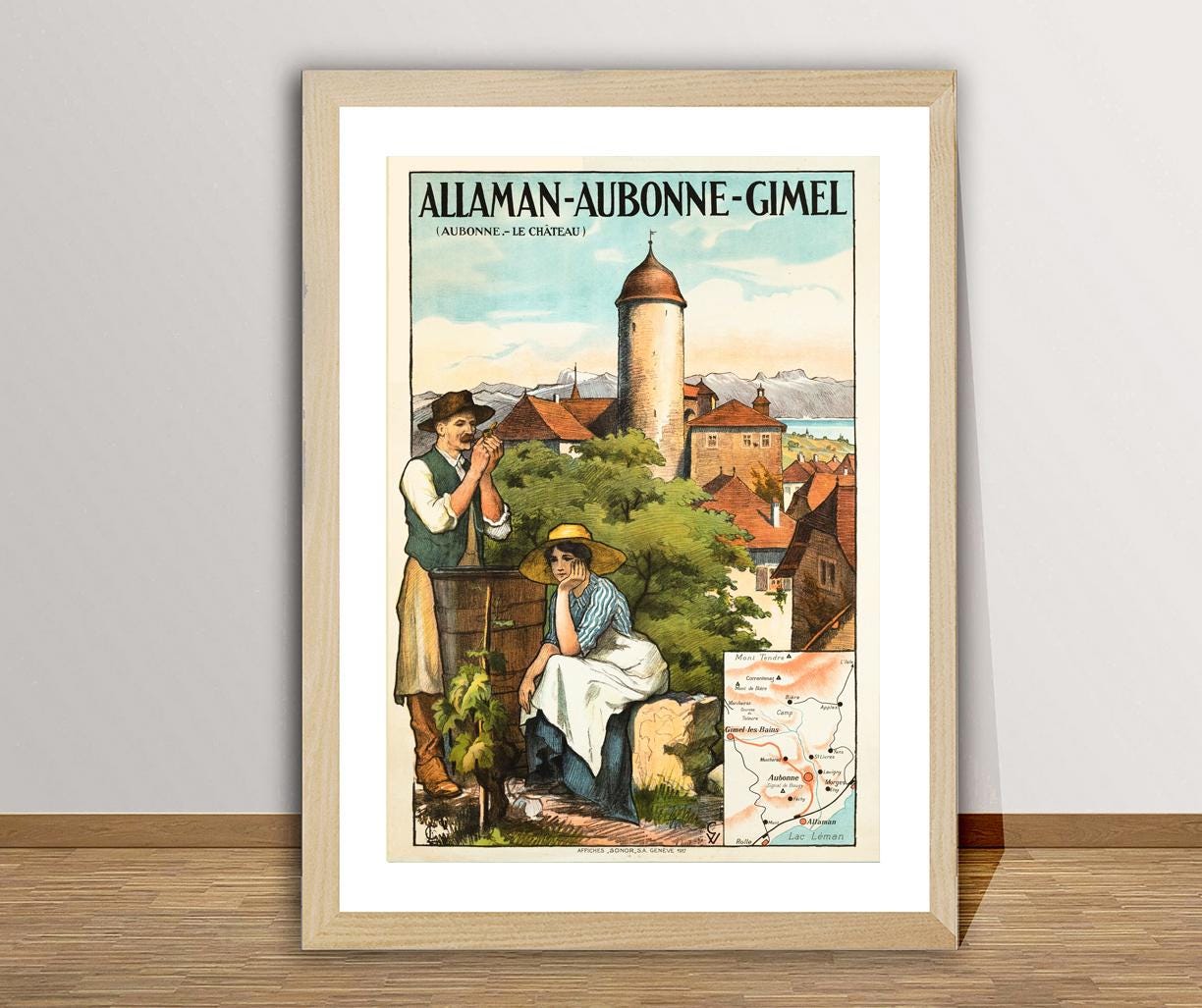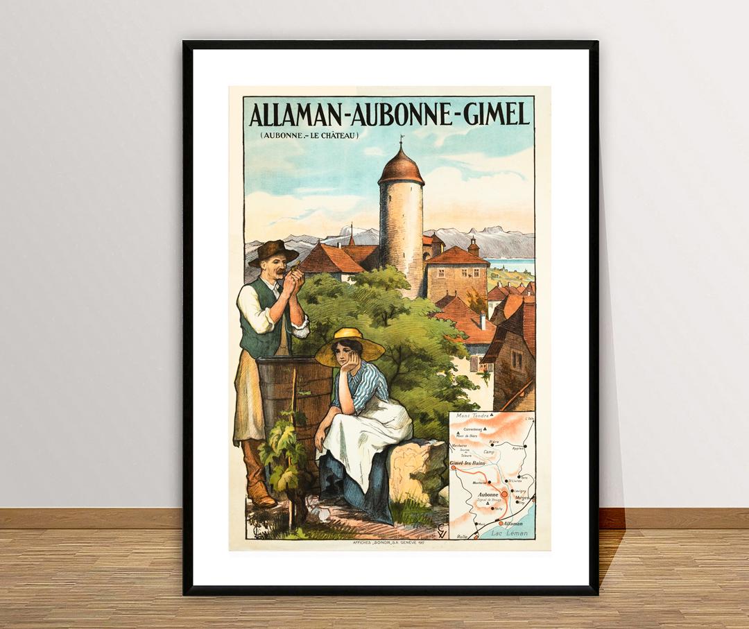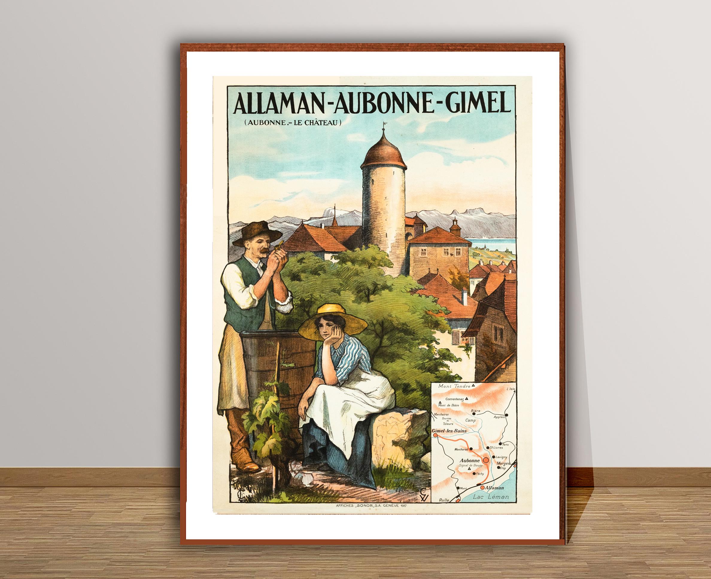 Allaman - Aubonne - Gimel, Aubonne Le Chateau, Suisse Vintage Travel Poster - Poster Paper or Canvas Print