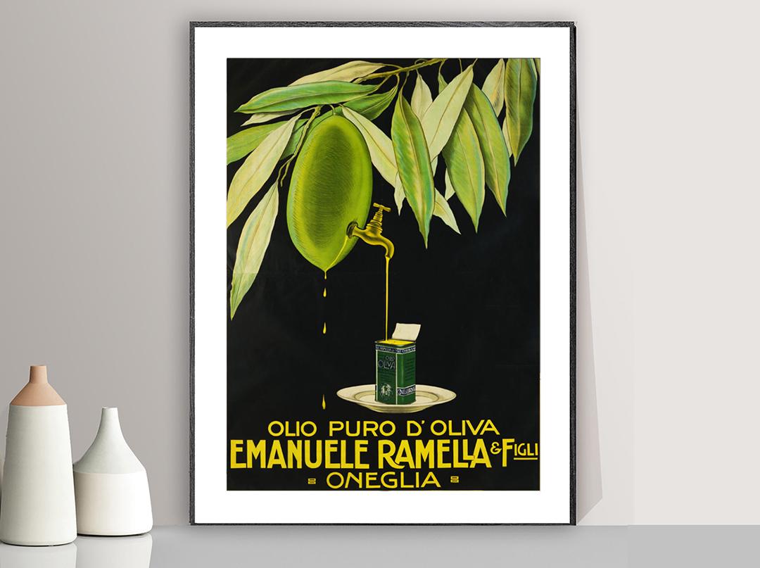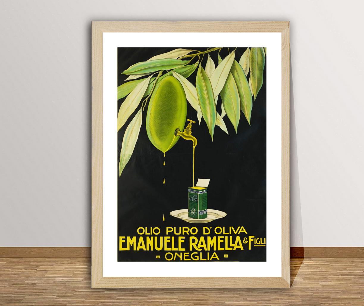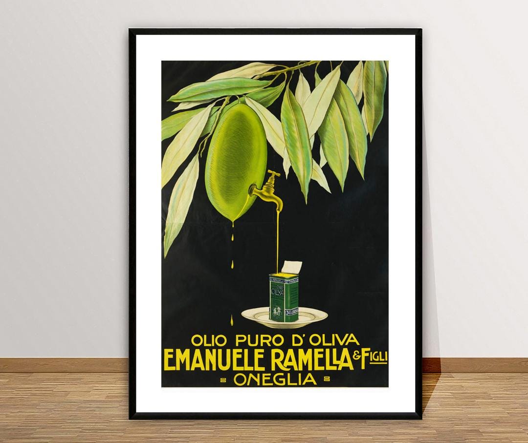Vintage Olive Oil Advertisement Art Print - Reproduction of a Retro Artwork, Decorative Purposes Wall Decor