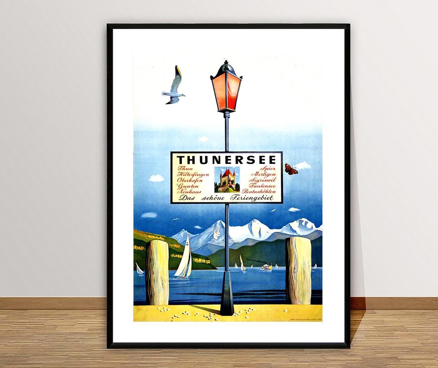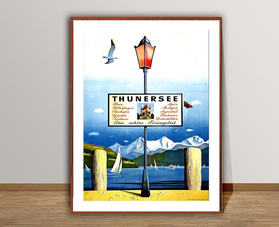 Vintage Thunersee Switzerland Travel Poster: Retro Swiss Wall Art