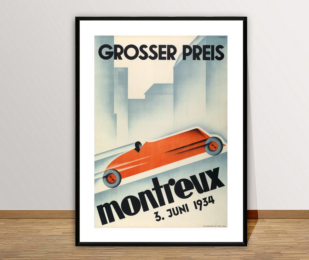 Vintage 1934 Grosser Preis Montreux Art Print: Swiss Racing Poster