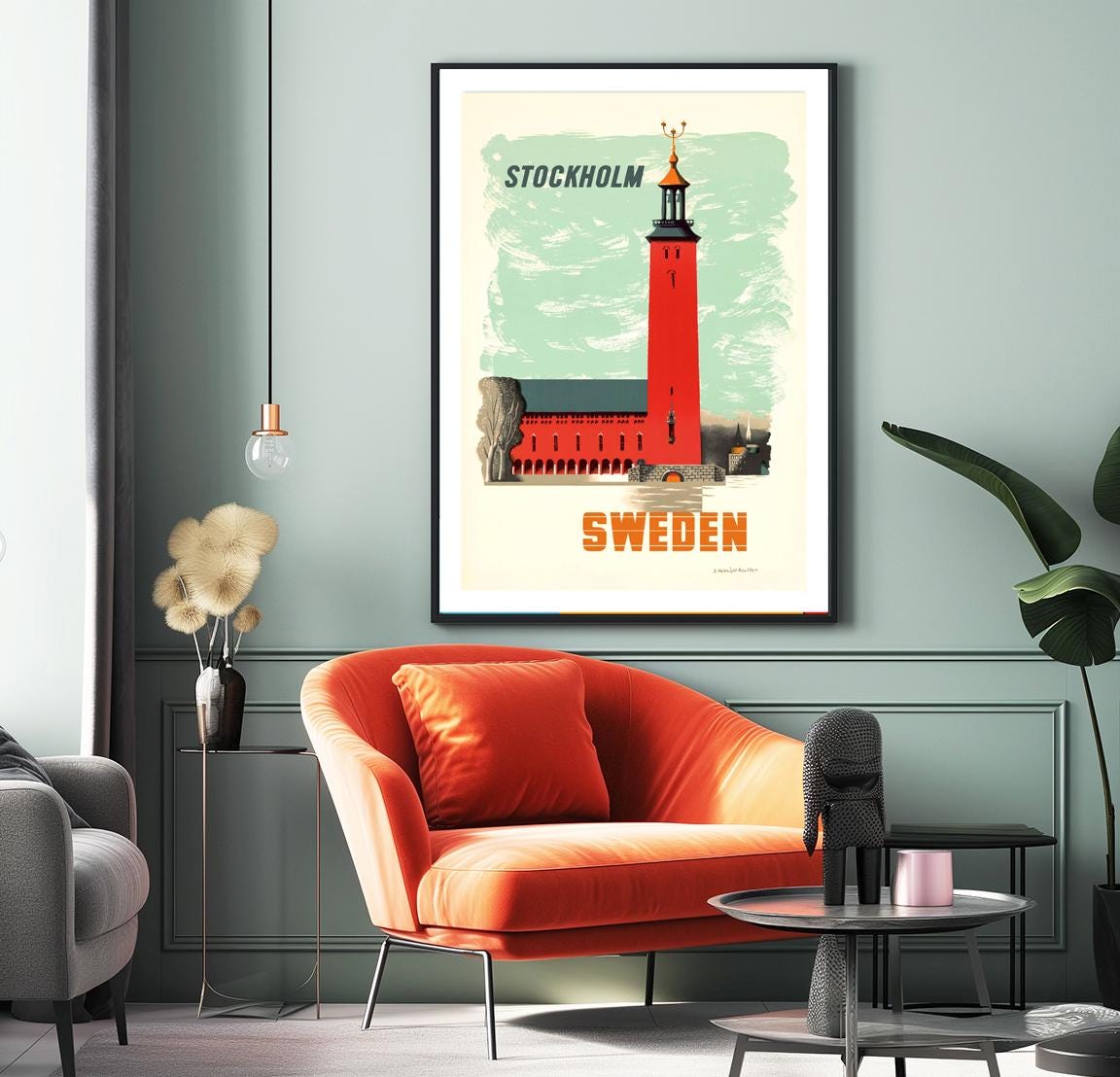 Vintage Stockholm City Hall Travel Poster: Retro Sweden Wall Art