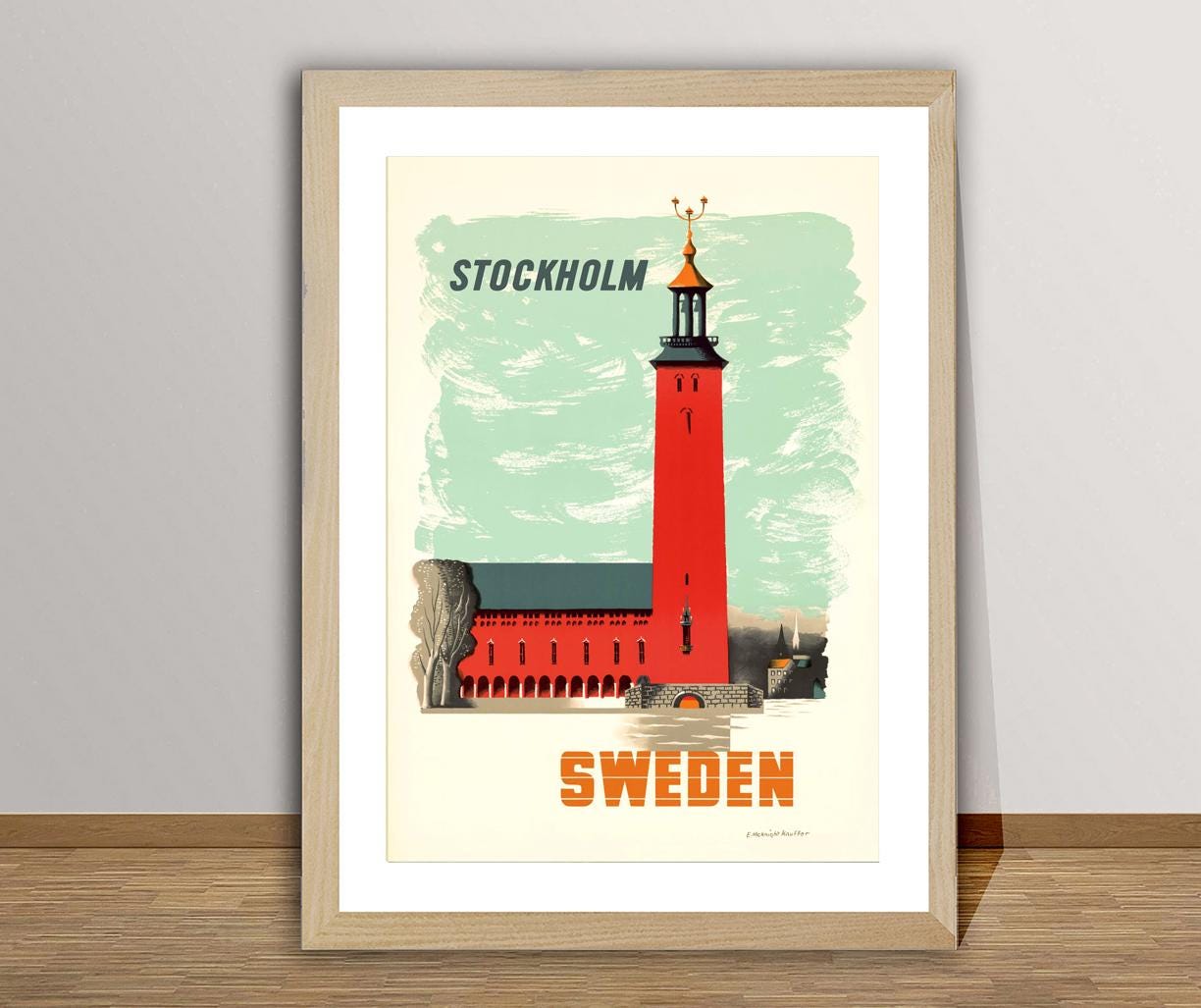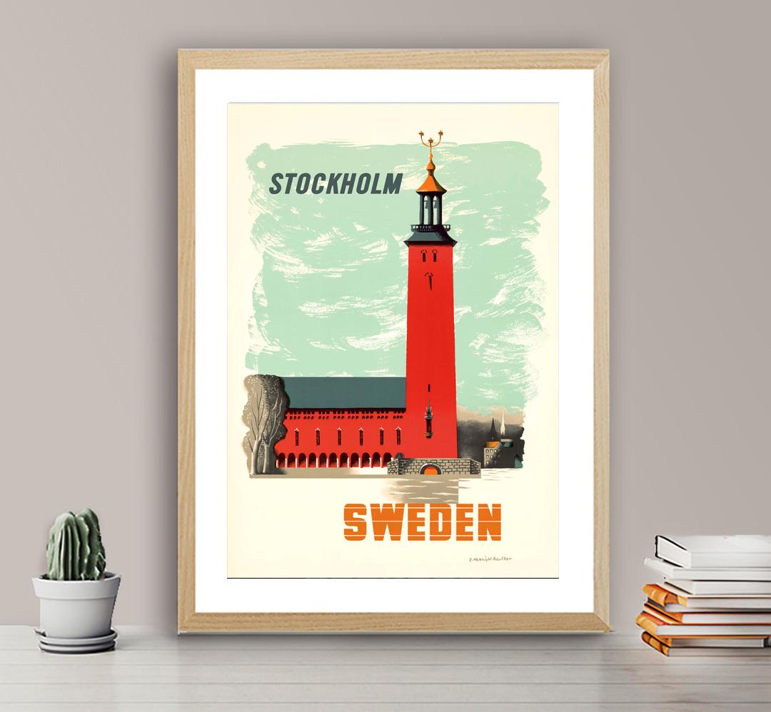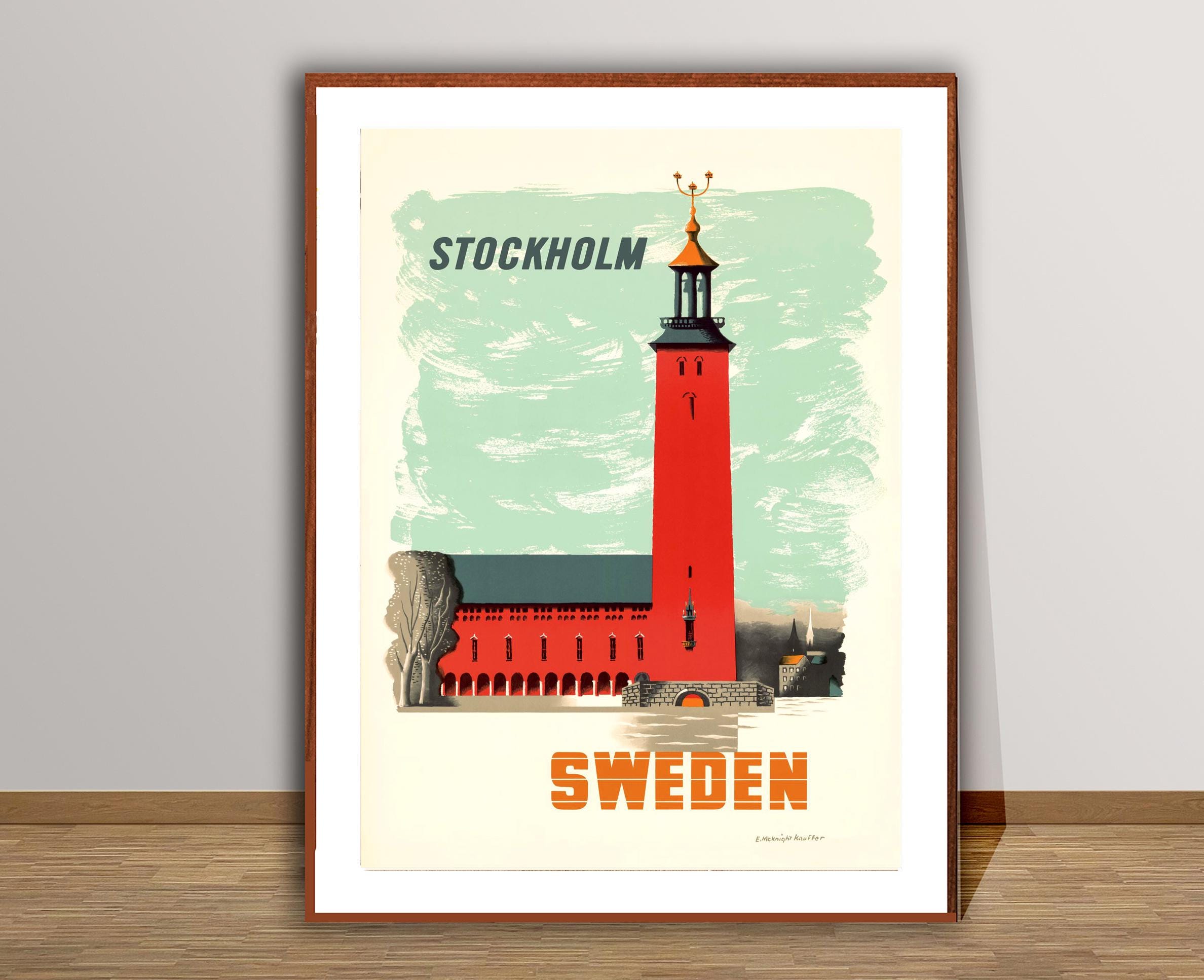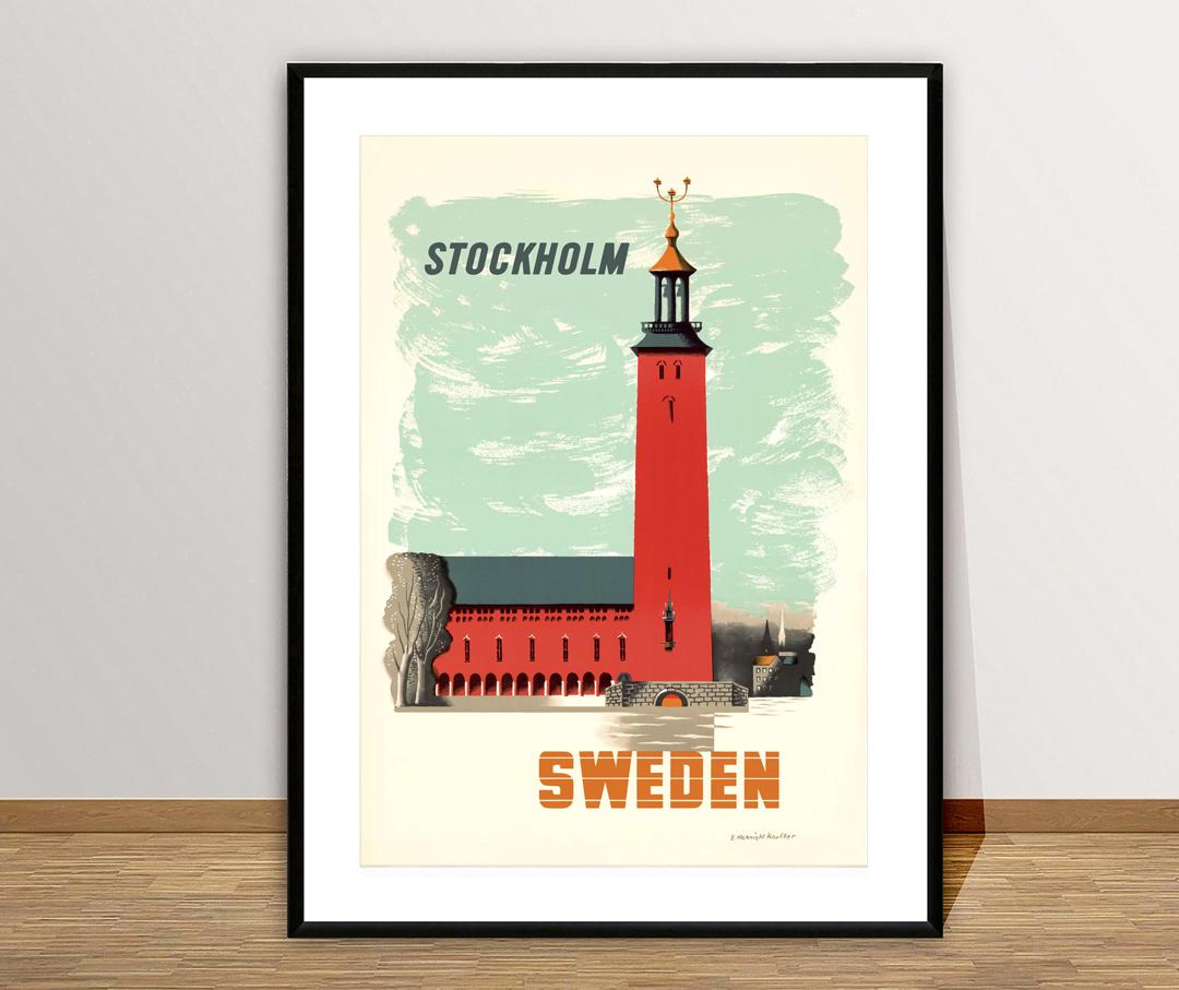 Stockholm, City Hall (Stadshuset) Sweden Vintage Travel Poster - Poster Paper or Canvas Print