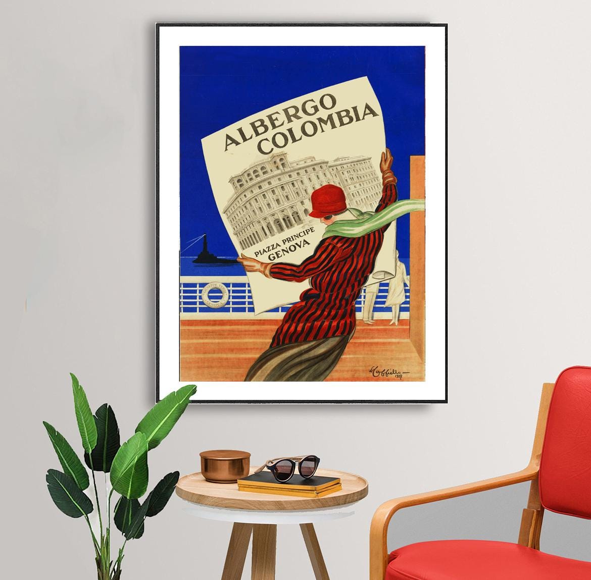 Albergo Columbia Piazza Principe Genova, Italy Vintage Travel Poster - Poster Paper, Canvas Print / Gift Idea