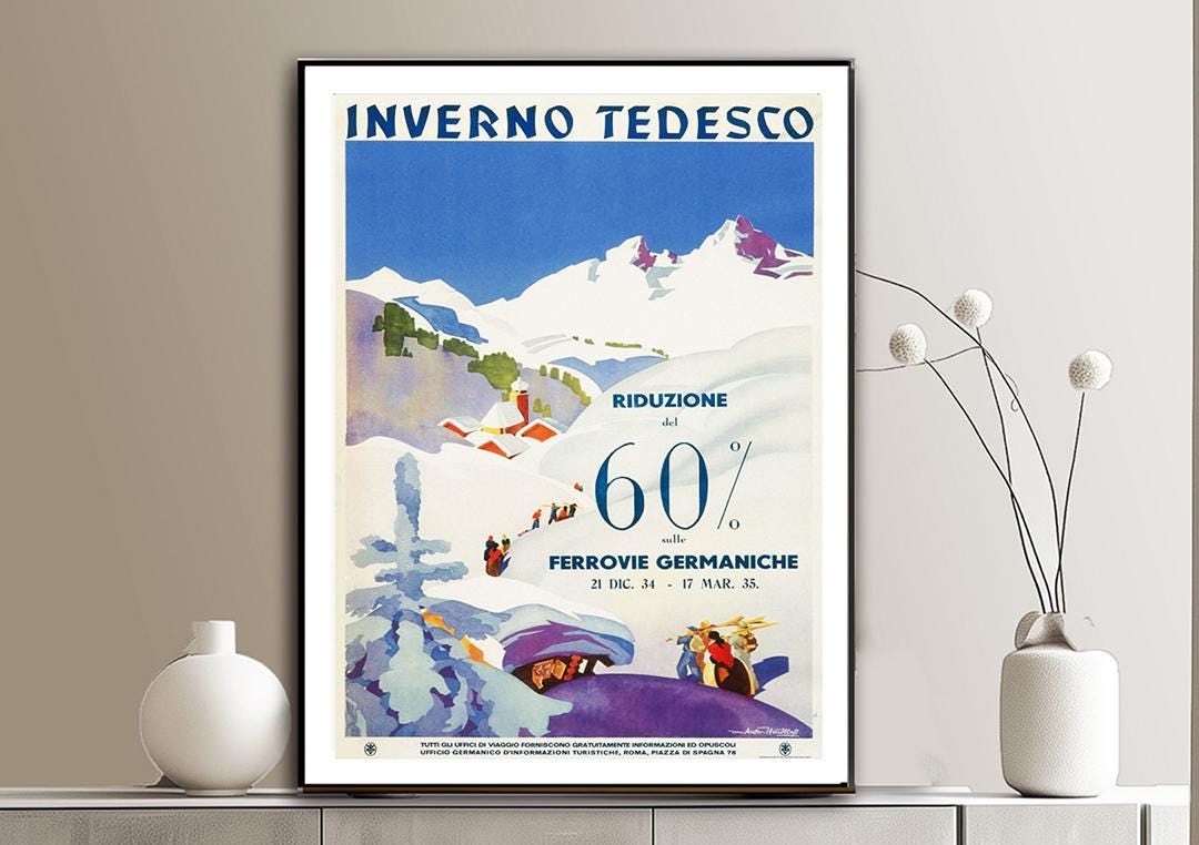 Vintage German Ski Poster: Inverno Tedesco Art Print