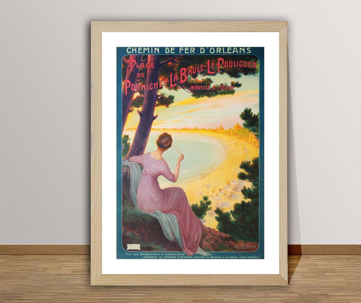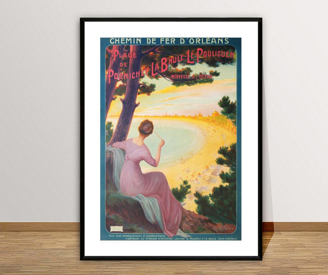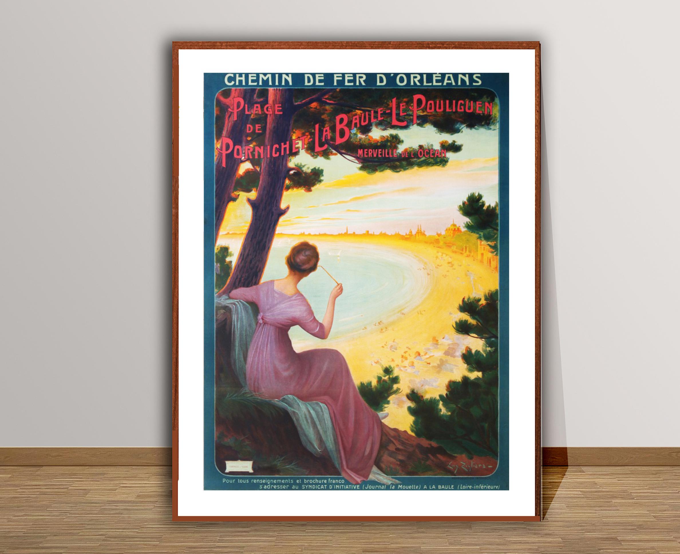 Plage de Pornichet, La Baule, La Pouliguen, Merveille de l'ocean ,France Vintage Travel Poster - Poster Paper, Canvas Print